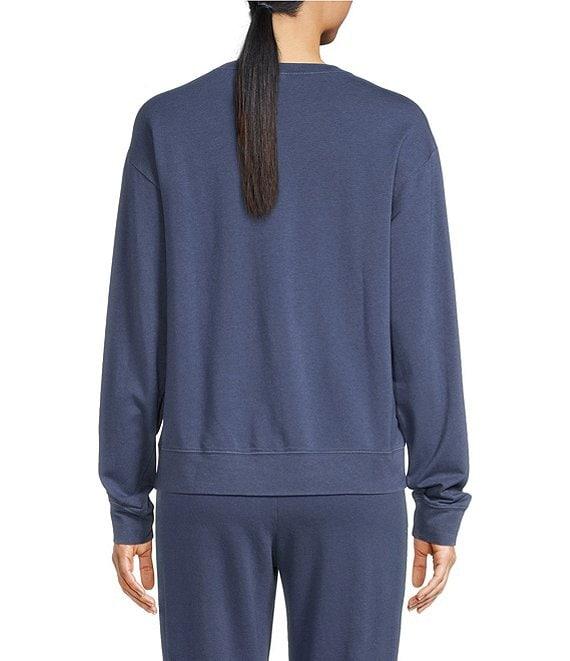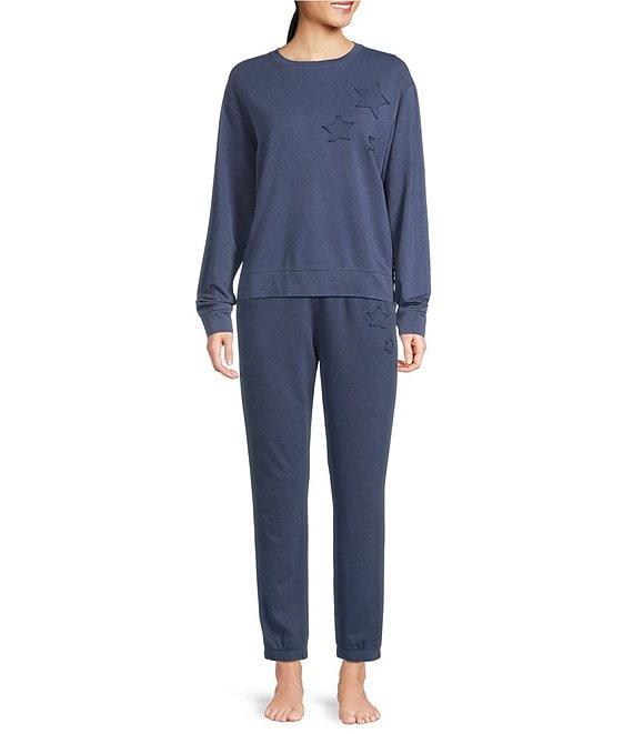 Jasmine & Ginger Long Sleeve Crew Washed French Terry Star Applique Coordinating Lounge Top
