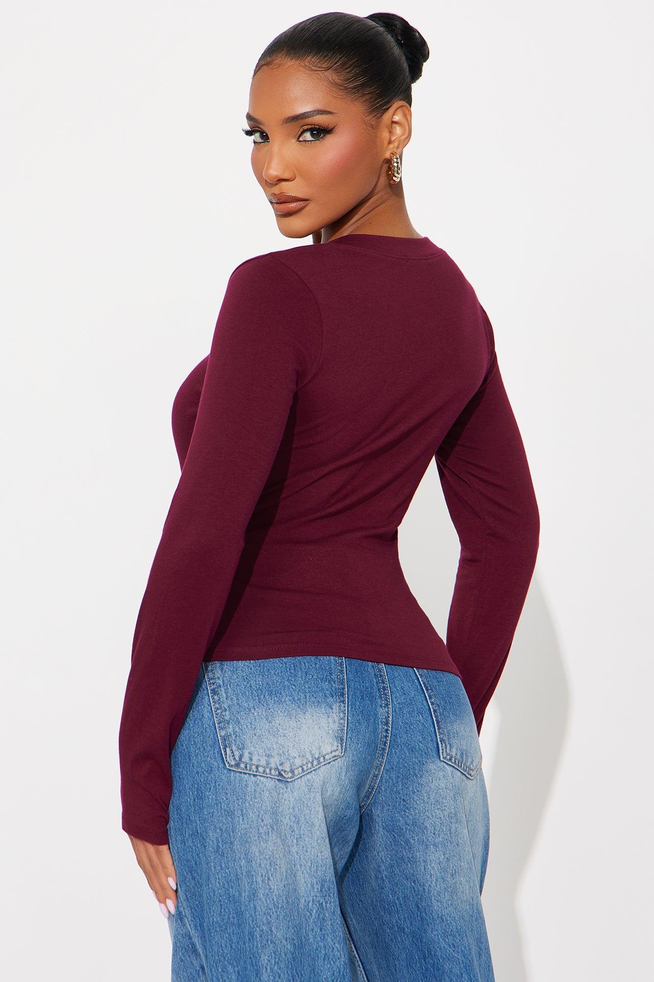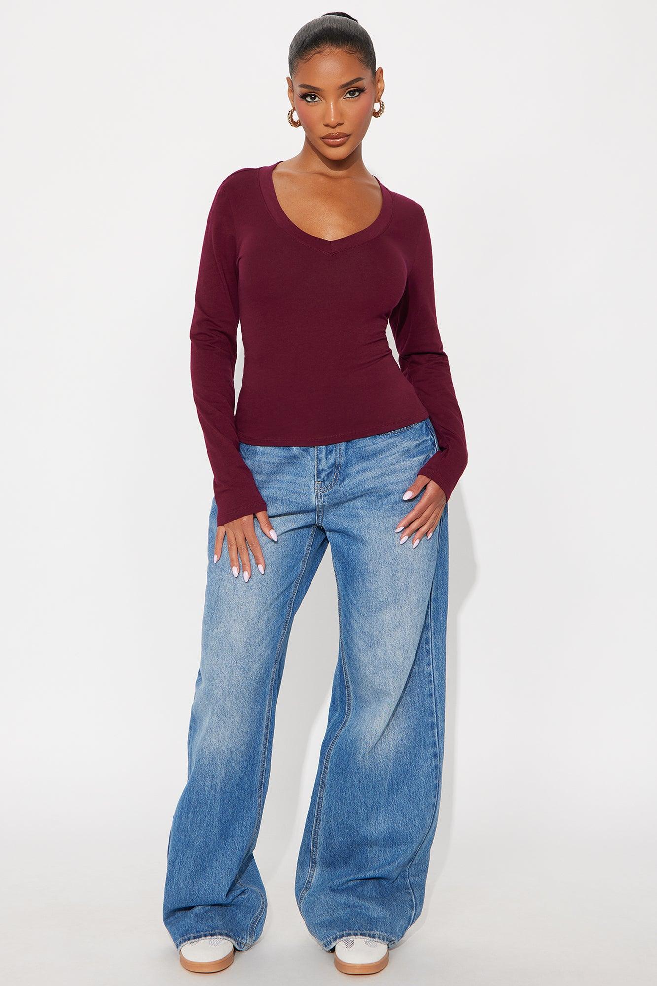 Jasmine V Neck Everyday Long Sleeve Top - Burgundy Female