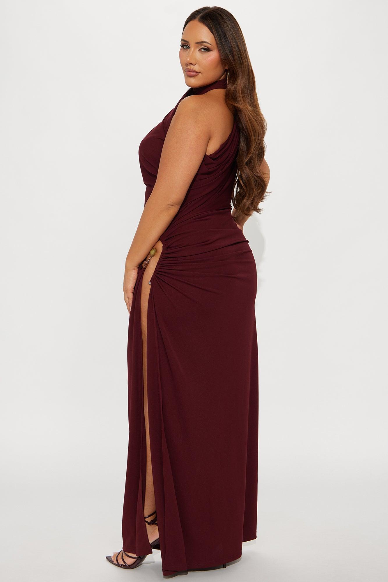 Jasmyn High Slit Maxi Dress - Burgundy Female