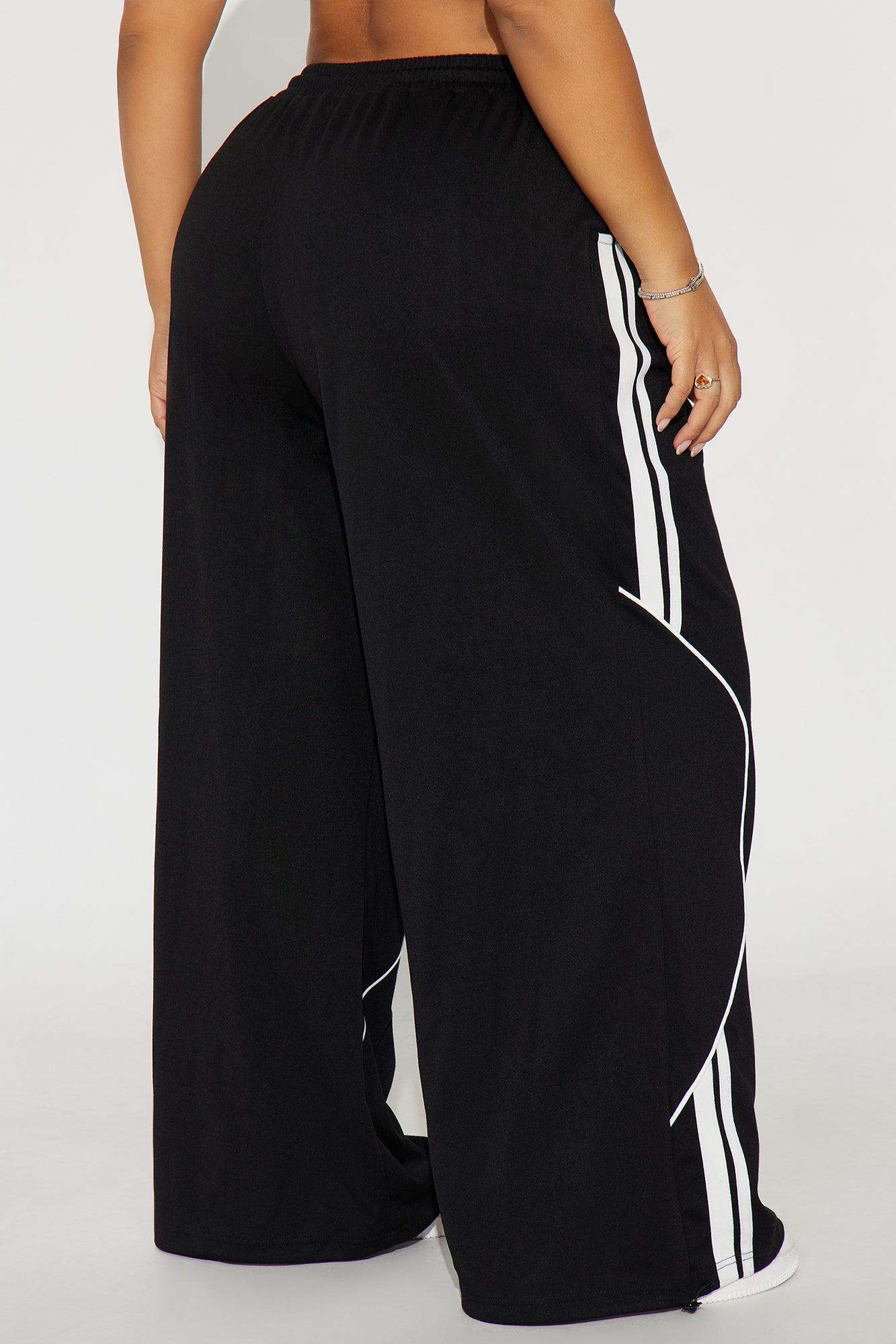 Available In Black/combo And Navy/combo. Rayon Blend Pants Drawstring Waist Contrast Athletic Stripes Wide Leg Inseam = 33" Stretch Self: 98% Polyester 2% Spandex Imported
