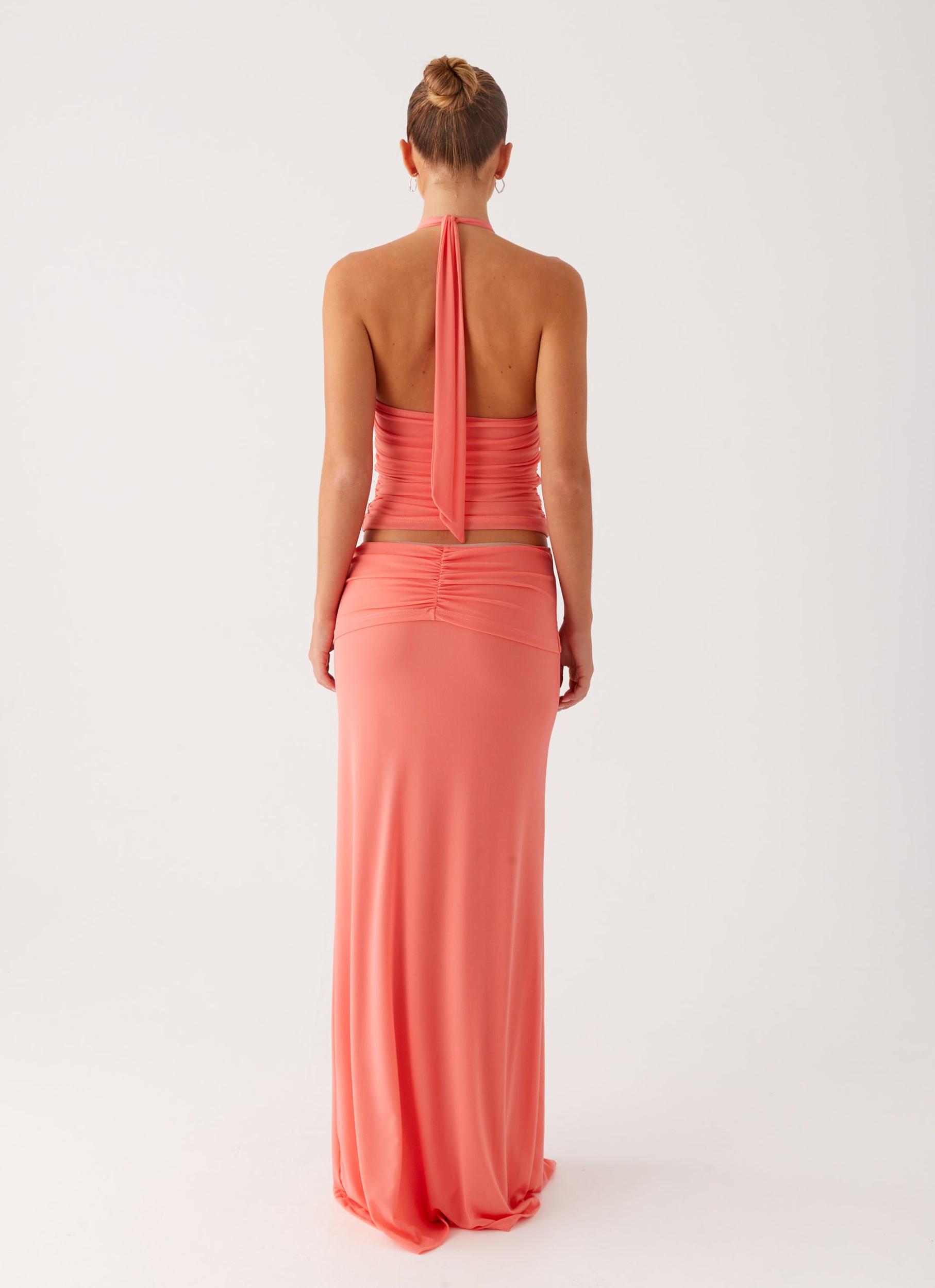 Peppermayo Exclusive The Jayce Maxi Skirt in salmon offers a low-rise fit with maxi length and elegant waistband side ruching. Featuring a front flower embellishment and elasticated waistband, it’s crafted from stretch mesh and fully lined for a smooth, flattering silhouette. - Low rise maxi length- Waistband side ruching- Front flower embellishment- Elasticated waistband- Stretch mesh- Fully lined- Fabric:95% Polyamide, 5% Spandex, L: Polyester Size AU 8 / US 4 garment measurements: Waist: 76 cm / 29.92 inHip: 82 cm / 32.28 inLength: 110 cm / 43.31 in Yasmin is 174cm and wears size AU 6 / size US 2