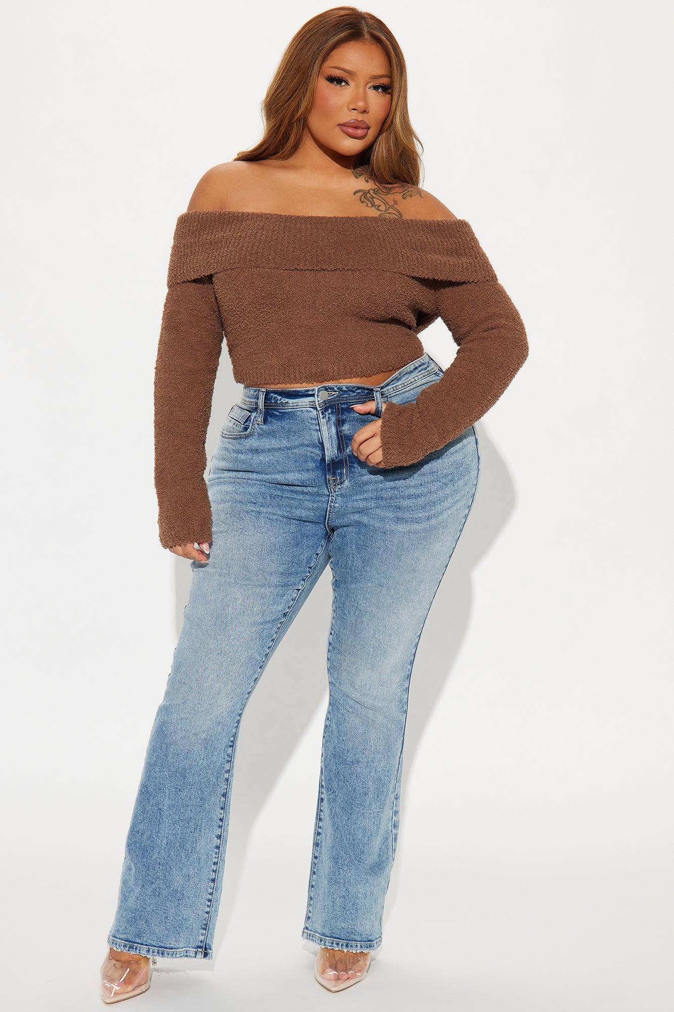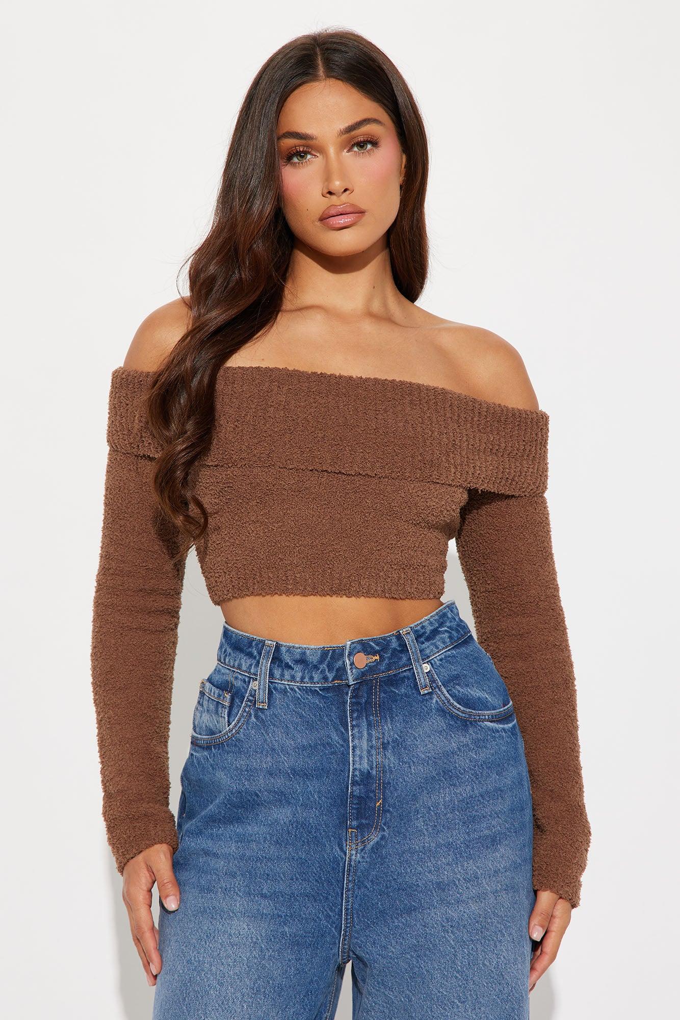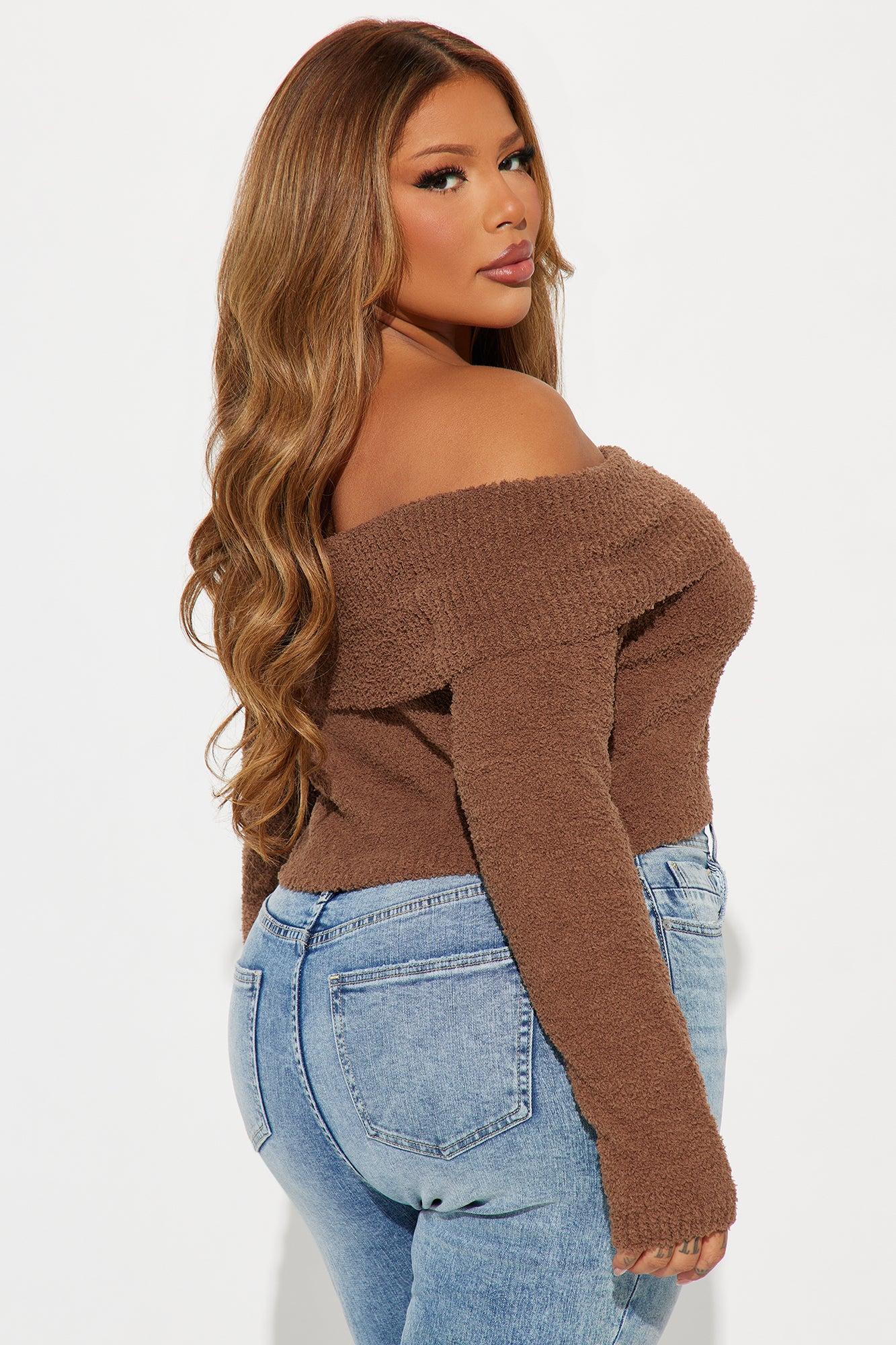 Jayla Fuzzy Off Shoulder Sweater - Mocha