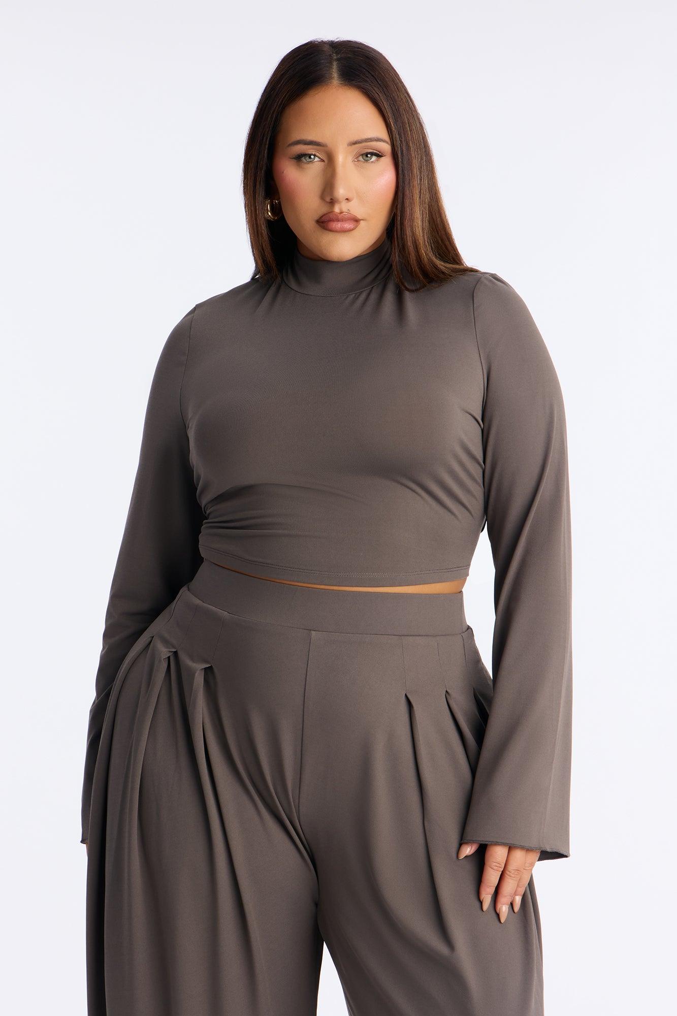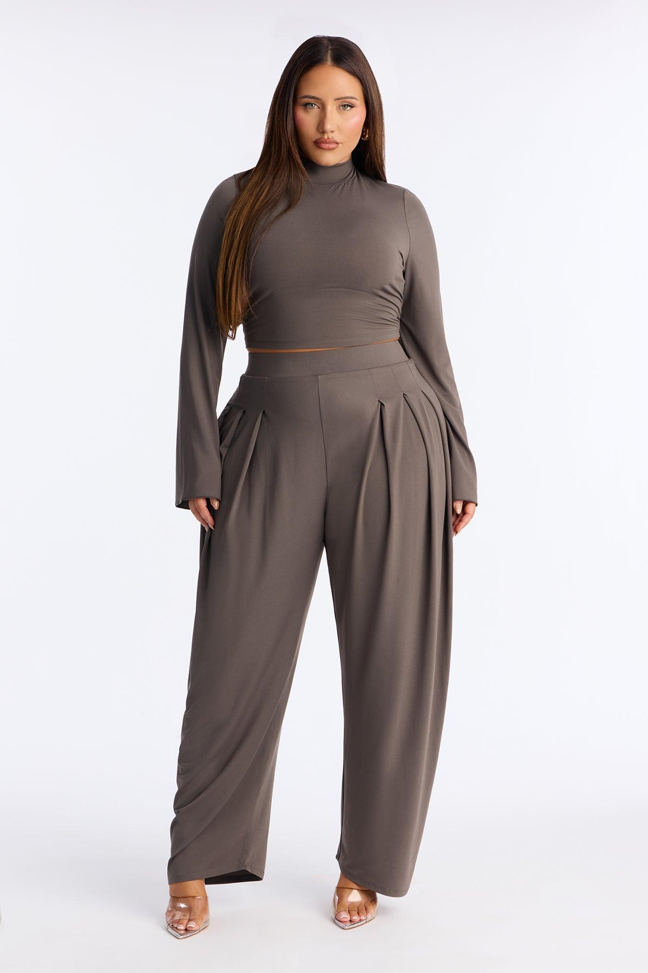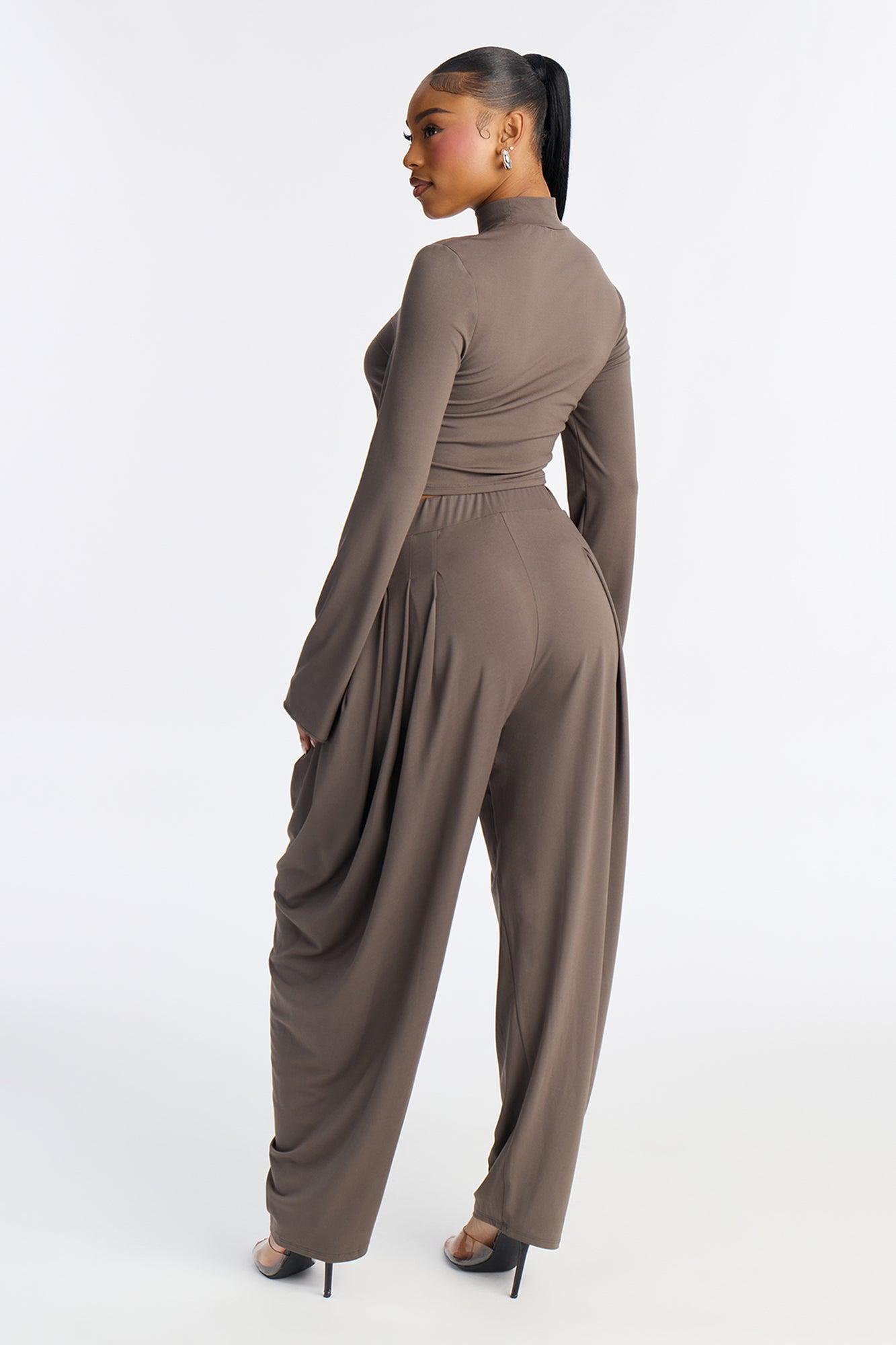Jenny Mock Neck Balloon Leg Pant Set - Grey Female