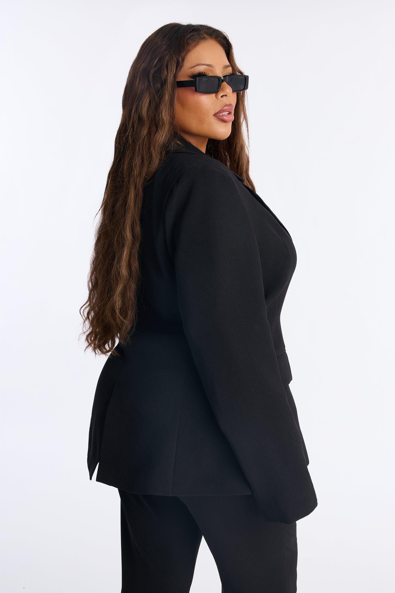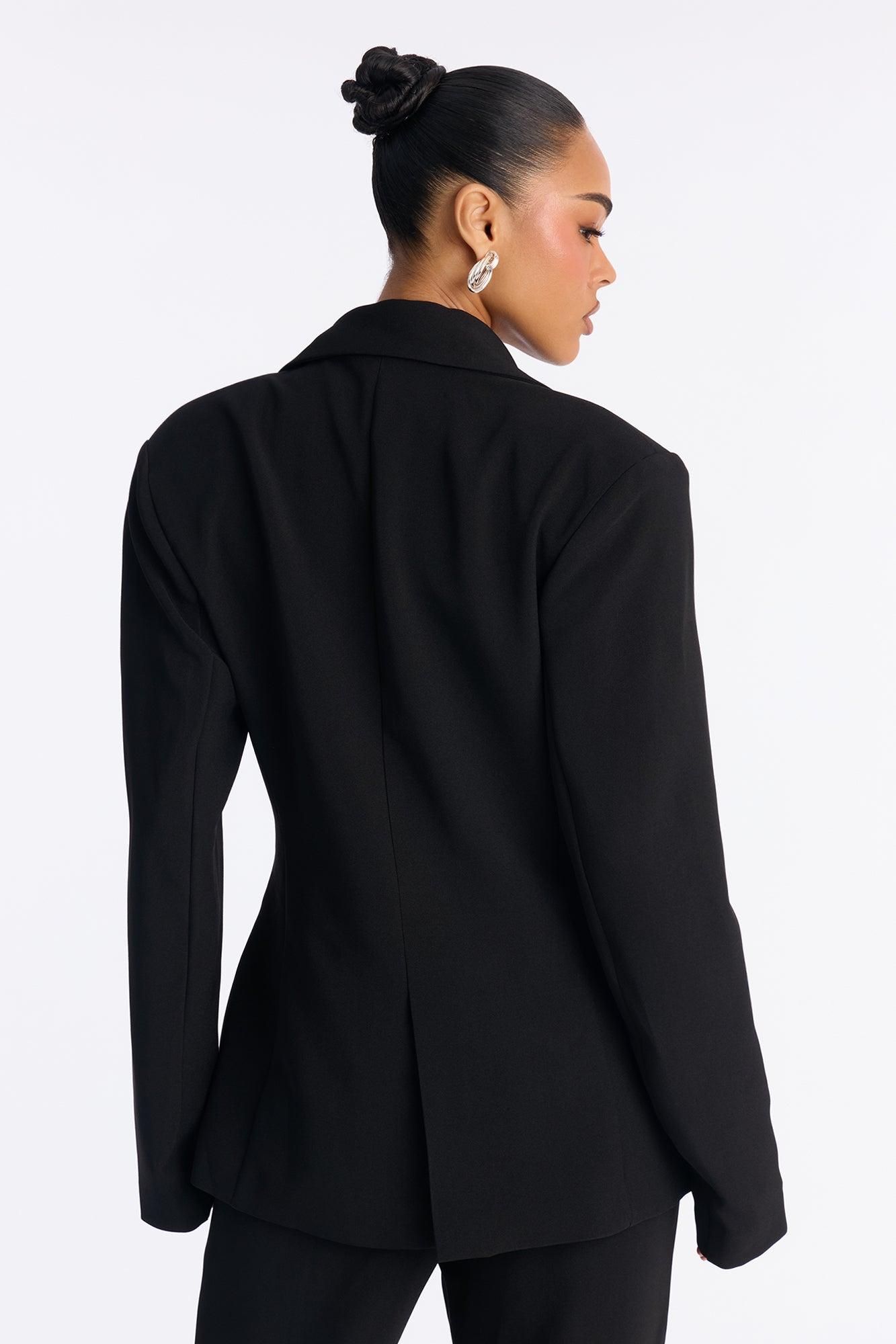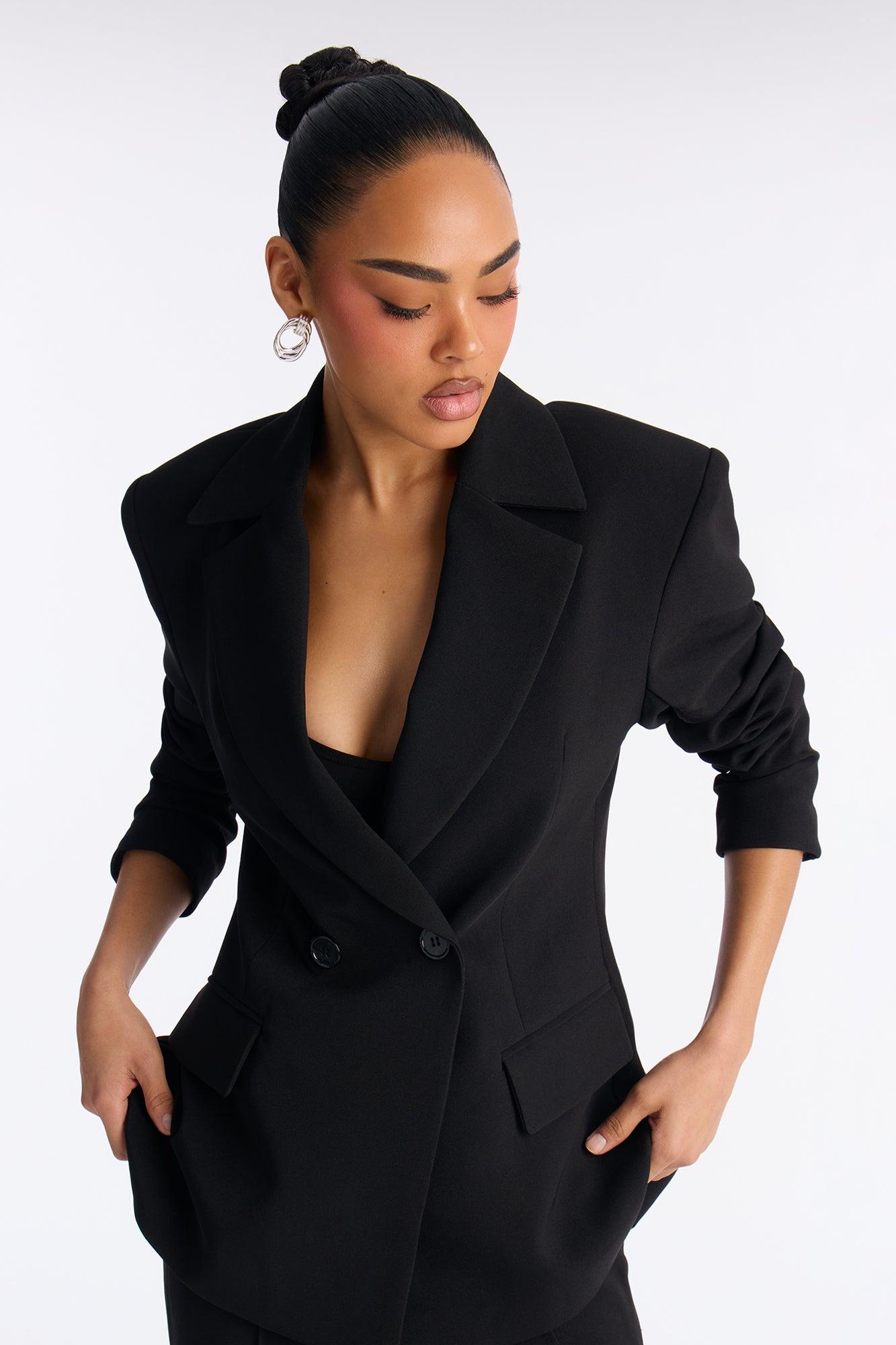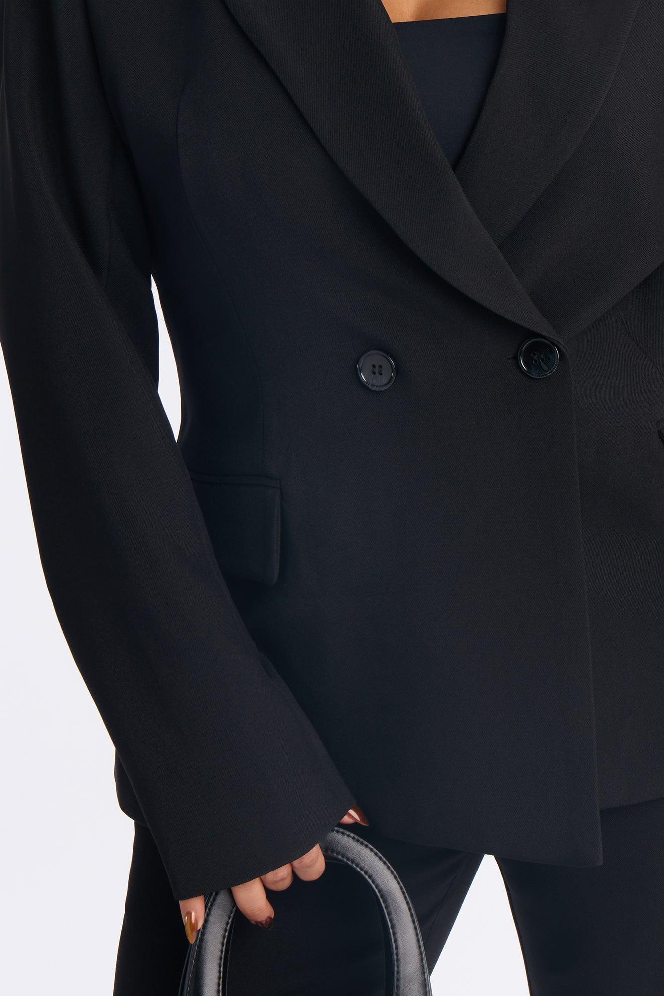 Available In Black And Navy. Double Breasted Blazer Lapel Collar Long Sleeve Button Closure Fully Lined Pair With "Jessica Flare Trouser Pant 32" Self: 95% Polyester 5% Spandex Lining: 100% Polyester Imported California Proposition 65WARNING: Cancer and Reproductive Harm - www.P65Warnings.ca.gov.