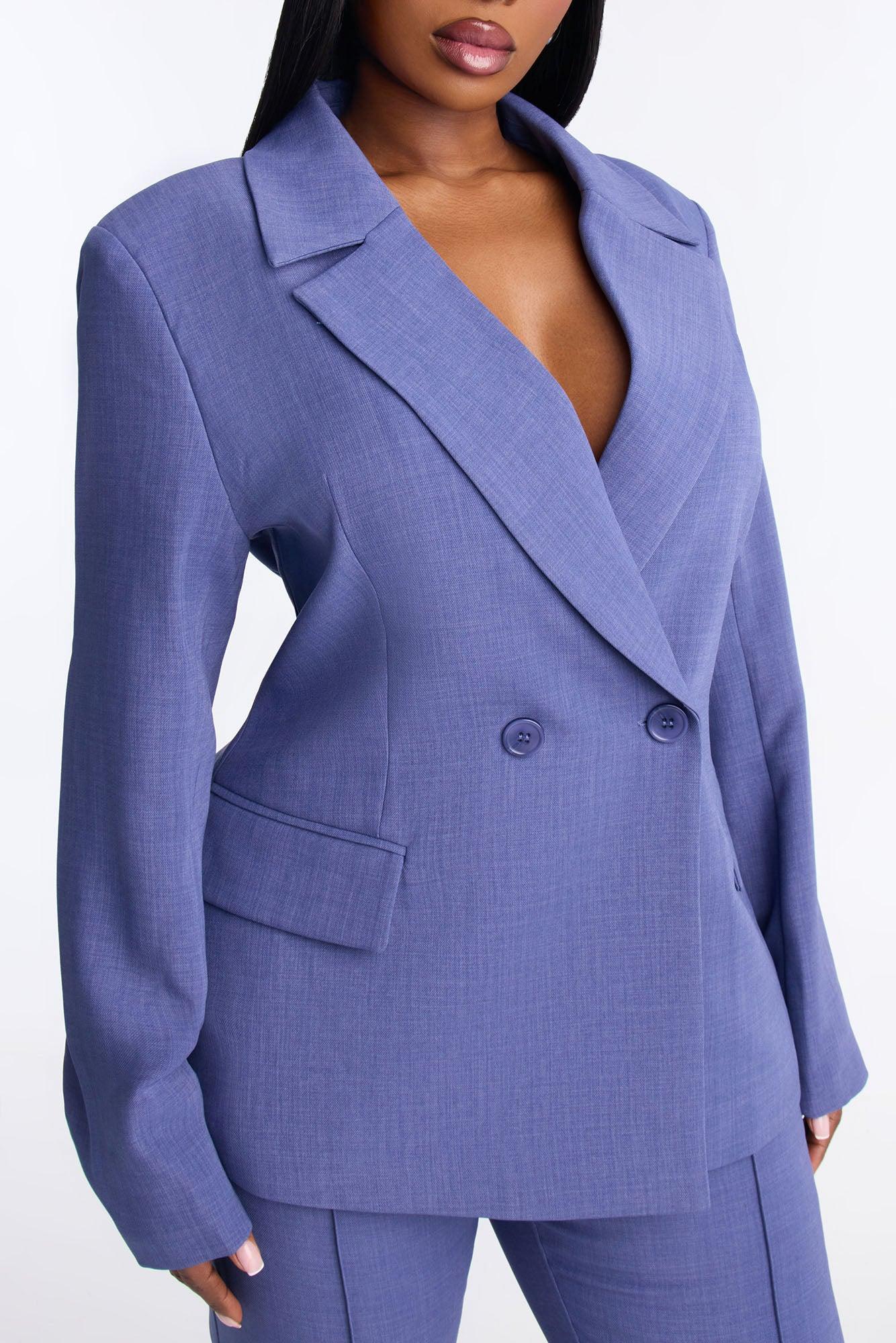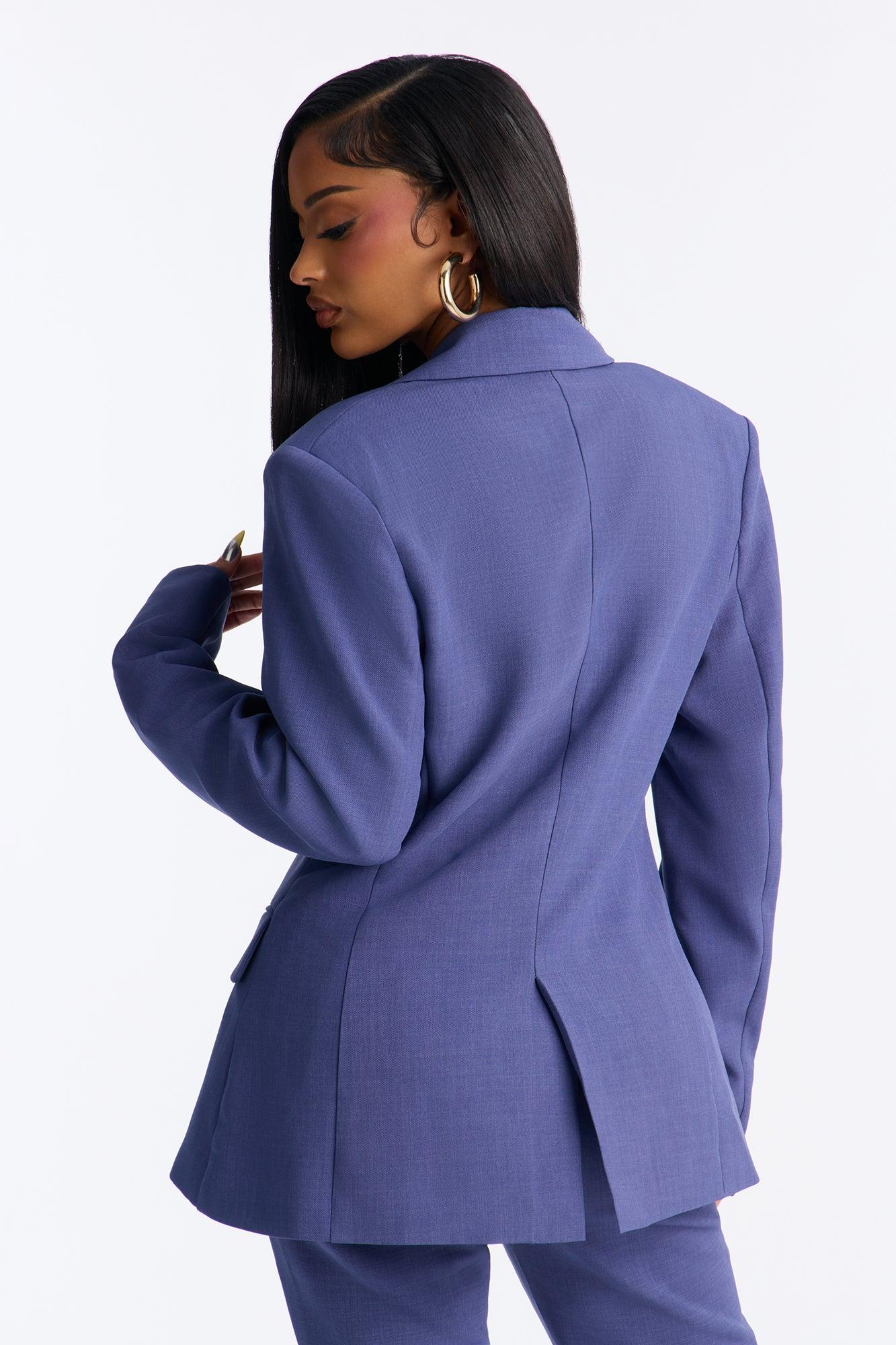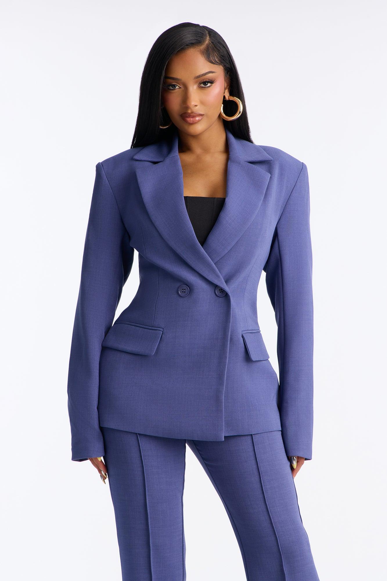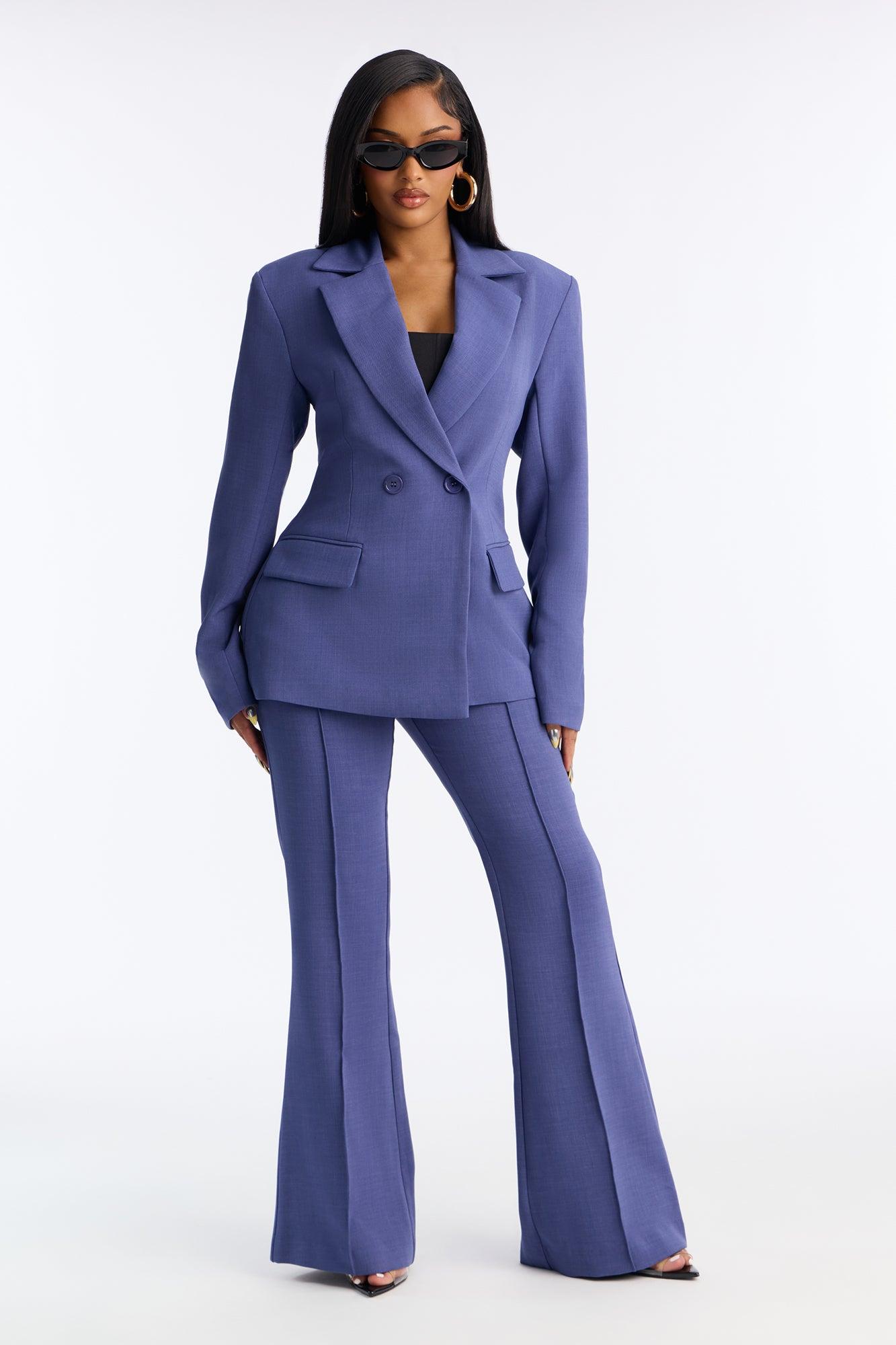 Available In Navy. Double Breasted Blazer Lapel Collar Long Sleeve Button Closure Fully Lined Pair With "Jessica Flare Trouser Pant 32" Shell: 95% Polyester 5% Spandex Lining: 100% Polyester Imported California Proposition 65WARNING: Cancer and Reproductive Harm - www.P65Warnings.ca.gov.