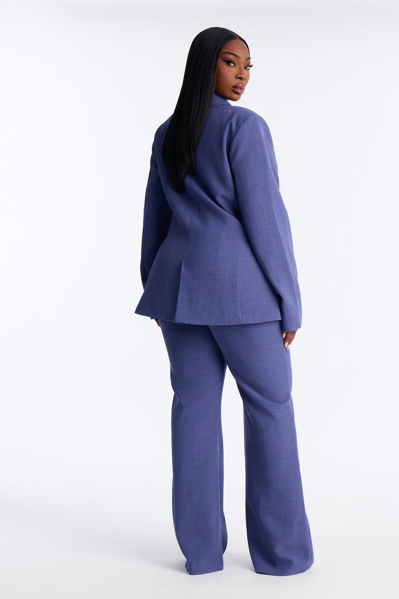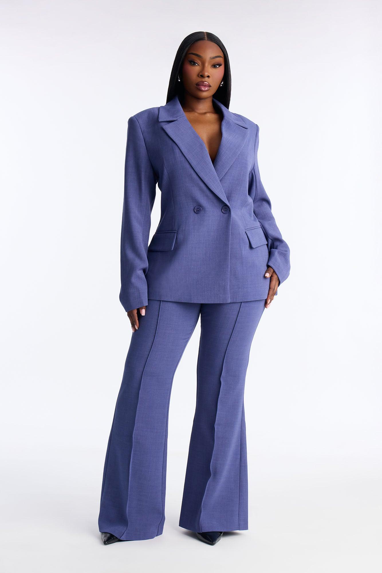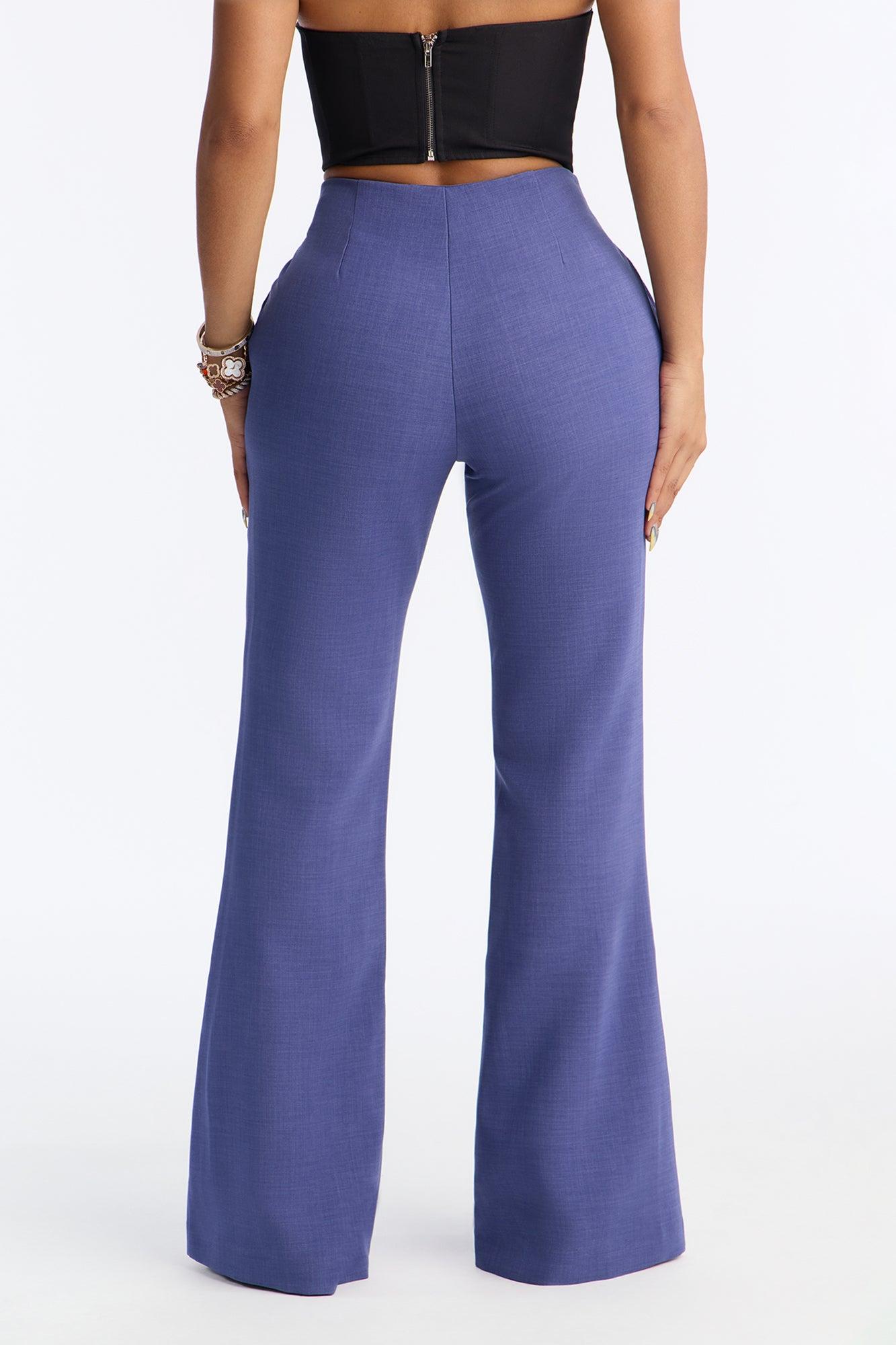 Available In Navy. Flare Trouser Pant Hook And Eye Zip Closure Functional Pockets 32" Inseam Non Stretch Pair With "Jessica Double Breasted Blazer" Shell: 95% Polyester 5% Spandex Lining: 100% Polyester Imported California Proposition 65WARNING: Cancer and Reproductive Harm - www.P65Warnings.ca.gov.