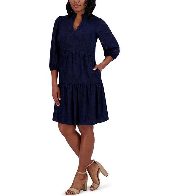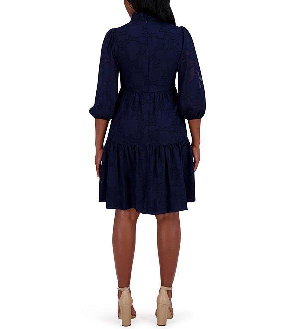 Jessica Howard Petite Size Ruffle Collar 3/4 Balloon Sleeve Tiered Sheath Dress