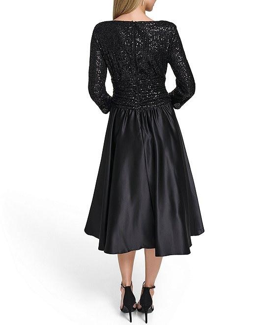 Jessica Howard Sequin V-Neck 3/4 Sleeve Satin Skirt Dress