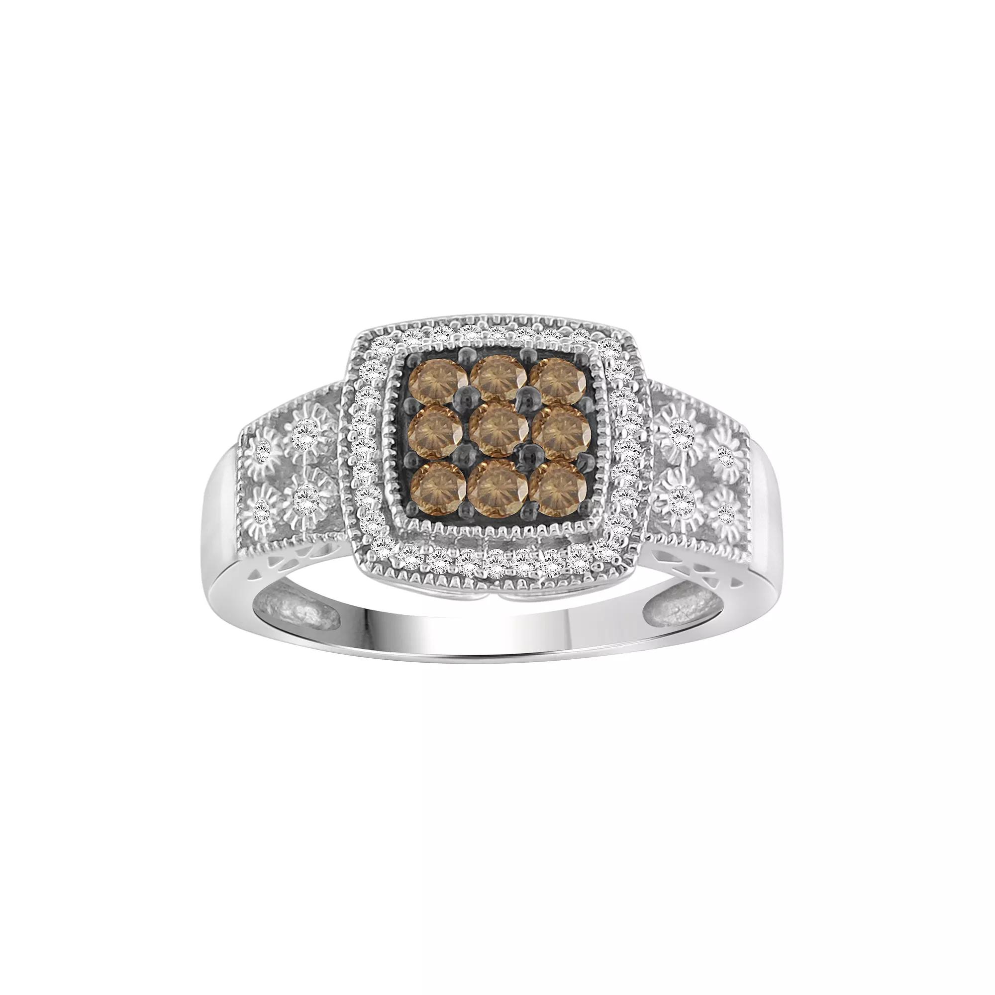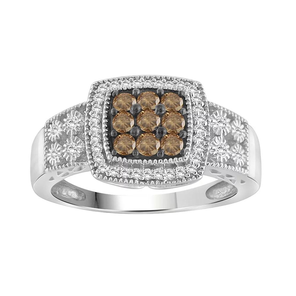 This Jewelexcess Sterling Silver 1/2 Carat T.W. Champagne & White Diamond Halo Square Ring puts a stunning final touch on your ensemble. Click on this JEWELRY & WATCHES GUIDE to learn about fit, styles, materials and more! This Jewelexcess Sterling Silver 1/2 Carat T.W. Champagne & White Diamond Halo Square Ring puts a stunning final touch on your ensemble. Click on this JEWELRY & WATCHES GUIDE to learn about fit, styles, materials and more! FEATURES Width: 10.75 mm Shank style: straight Band fit: comfort fit Metal: sterling silver Plating: rhodium Finish: polished Nickel free ImportedDIAMOND DETAILS Total weight: 1/2 ct. Color: champagne, I-J Clarity: I3 Shape: round brilliant Setting: prong Diamond weights are approximate. Diamond Total Weights may vary between .01 and .13 ct. Some diamonds consist of fewer than 17 facets. Gemstones may have been treated to enhance their appearance. Special care may be required. Please visit our Gemstone Treatment & Special Care Guide for more information. Image(s) may be enlarged to show detail. Gender: female. Age Group: adult.