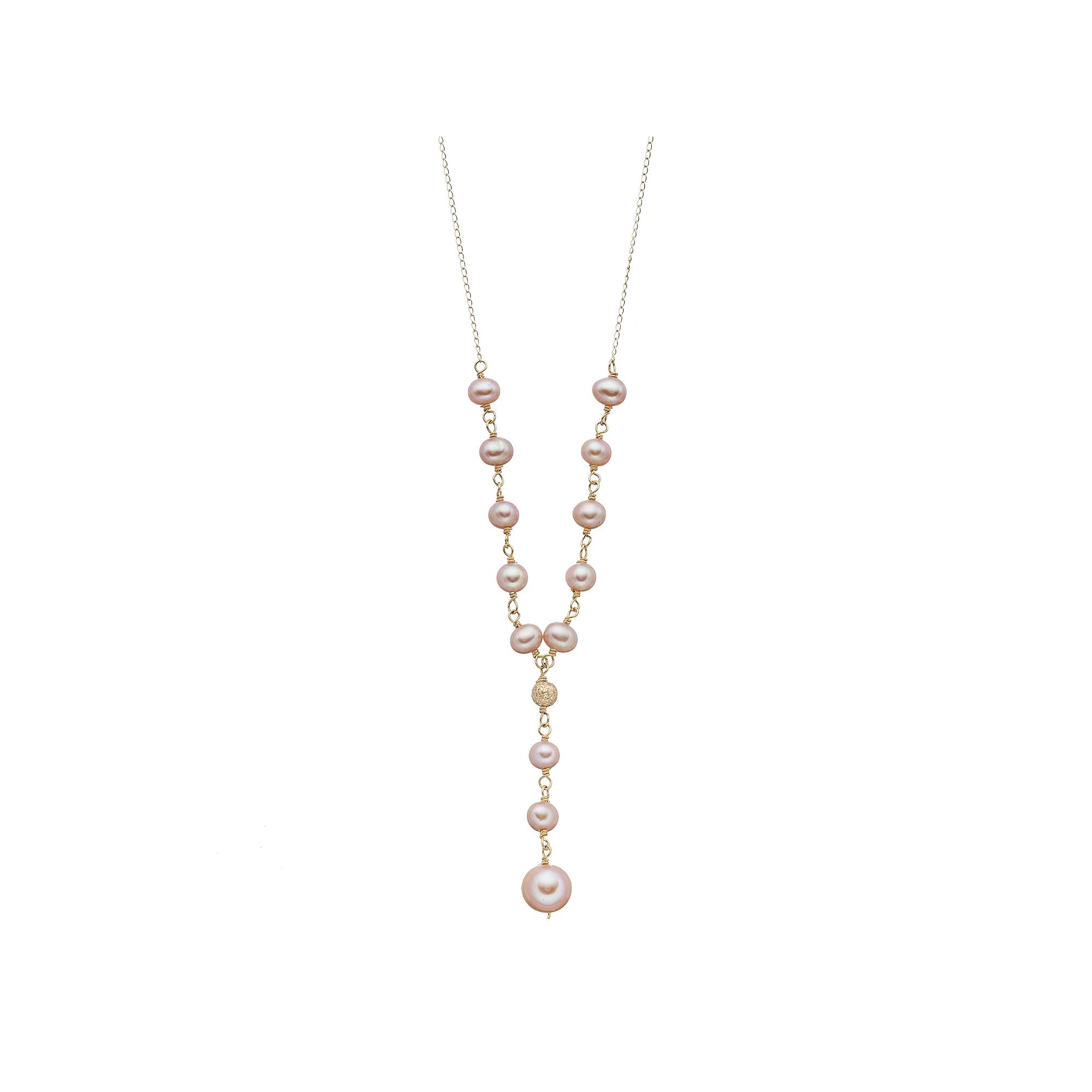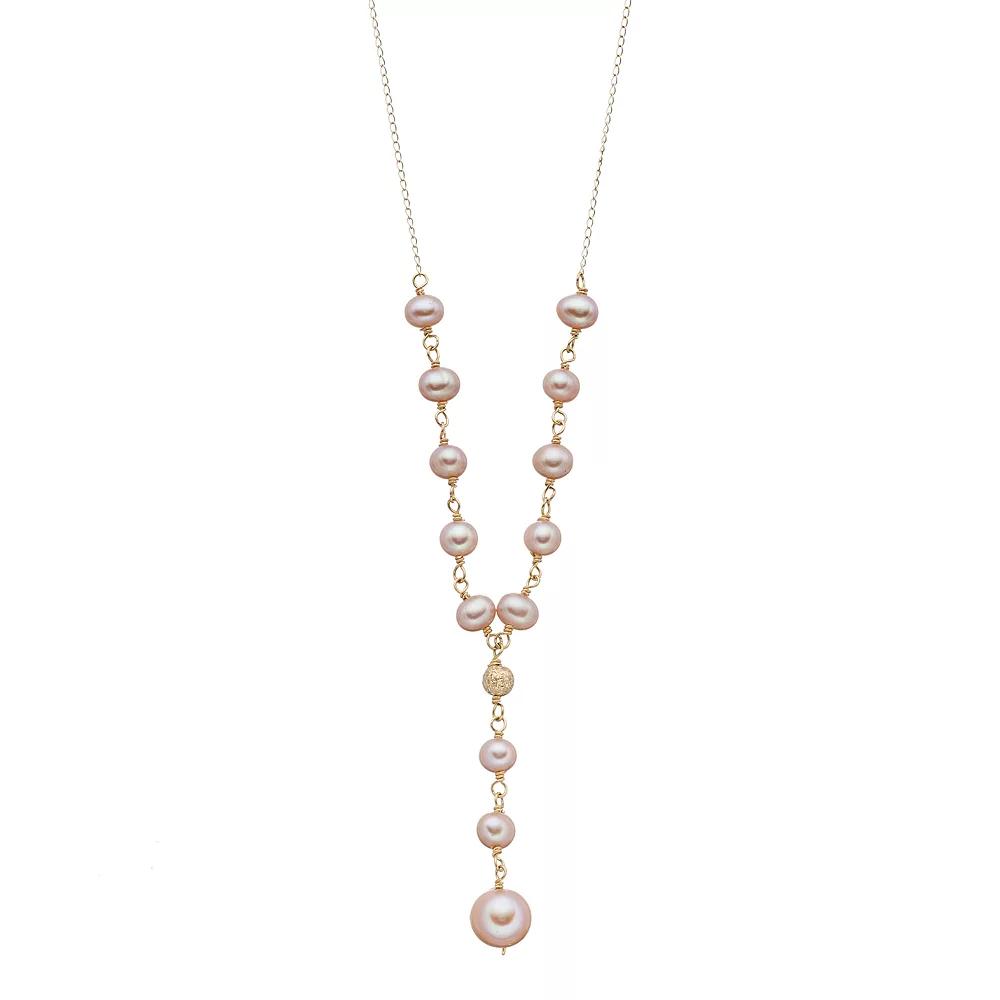 Decorated with pink freshwater cultured pearls, this 14k gold Y necklace abounds with graceful elegance.NECKLACE DETAILS Length: 17 in. Drop length: 2 in. Clasp: lobster-claw Metal: 14k goldMay contain 14k gold filled connection wire Packaging: boxed CULTURED PEARL DETAILS Type: freshwater Shape: round Size: 3.5-4 mm, 6.5-7 mm Color: pinkGemstones may have been treated to enhance their appearance. Special care may be required. Please visit our Gemstone Treatment & Special Care Guide for more information. Size: 17. Gender: female. Age Group: adult.