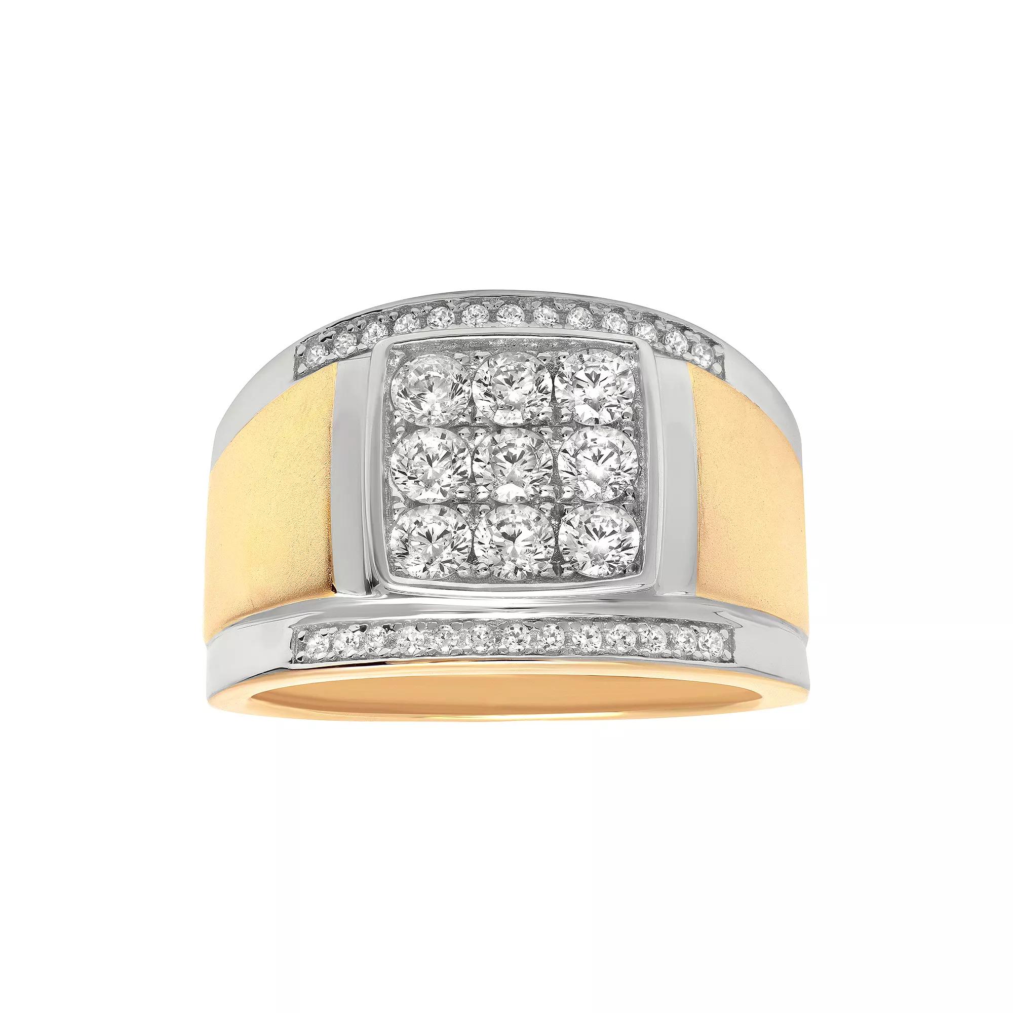 Jewelry Nation Men's 14k Gold Over Silver Cubic Zirconia Cluster Ring, Silvertone