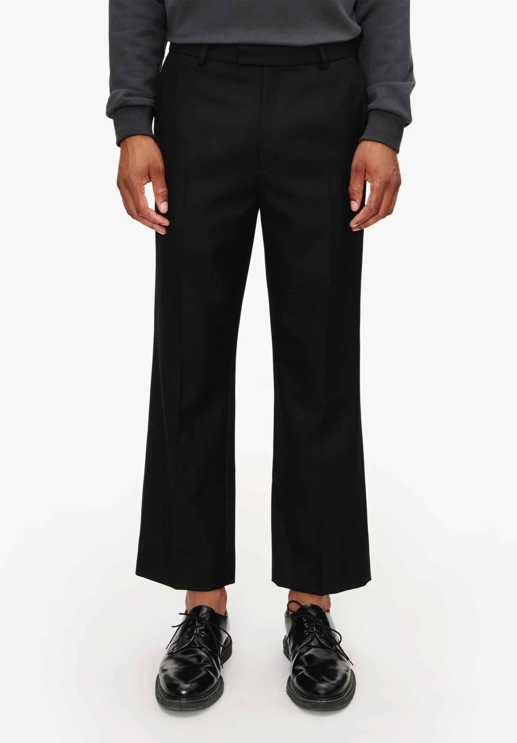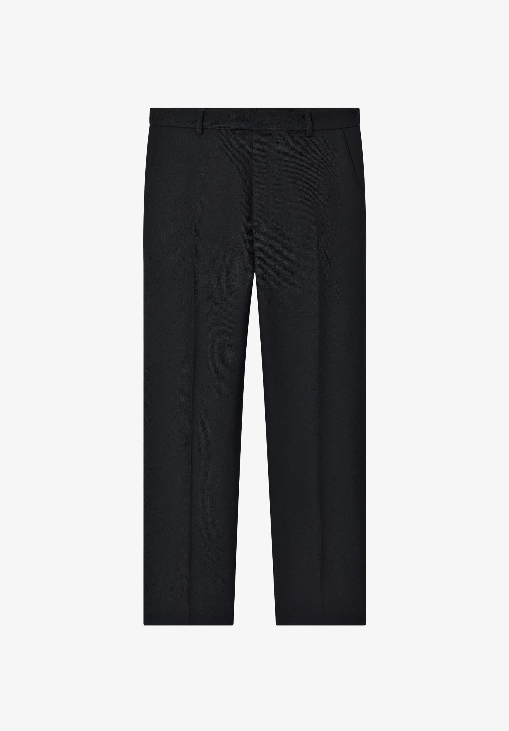 - Straight cut. - Mid-rise. - Front and back creases. - Hidden button closure. - Two side pockets and two back pockets.
