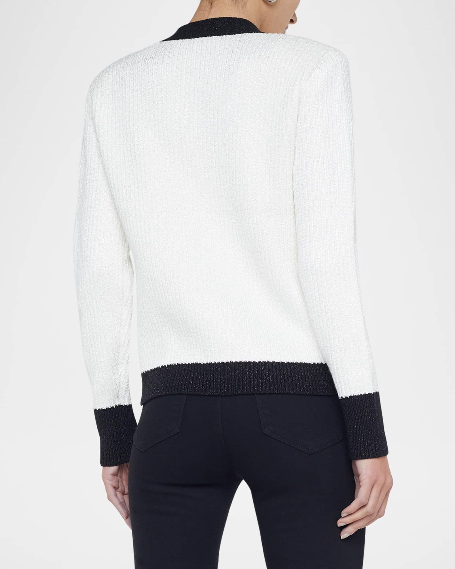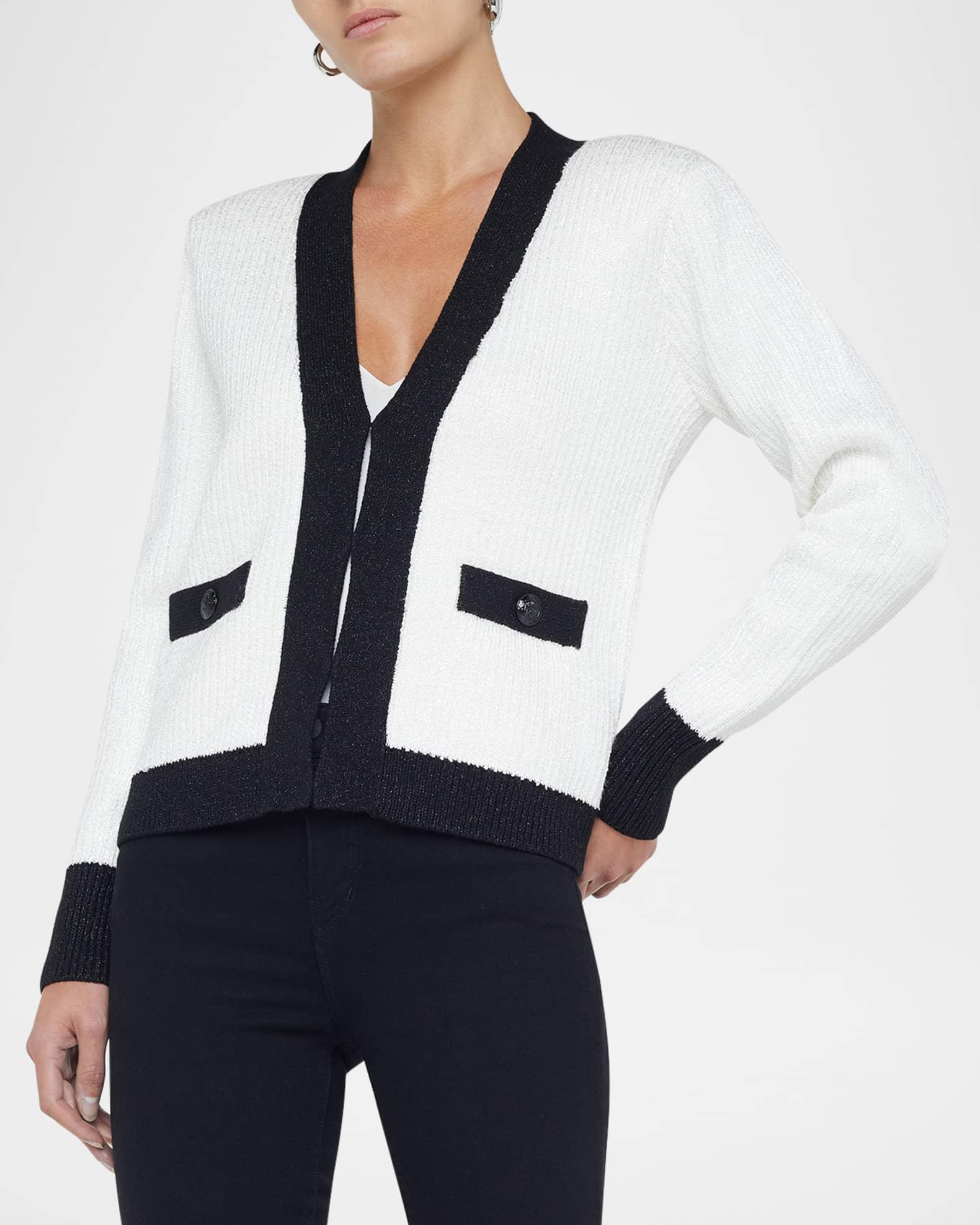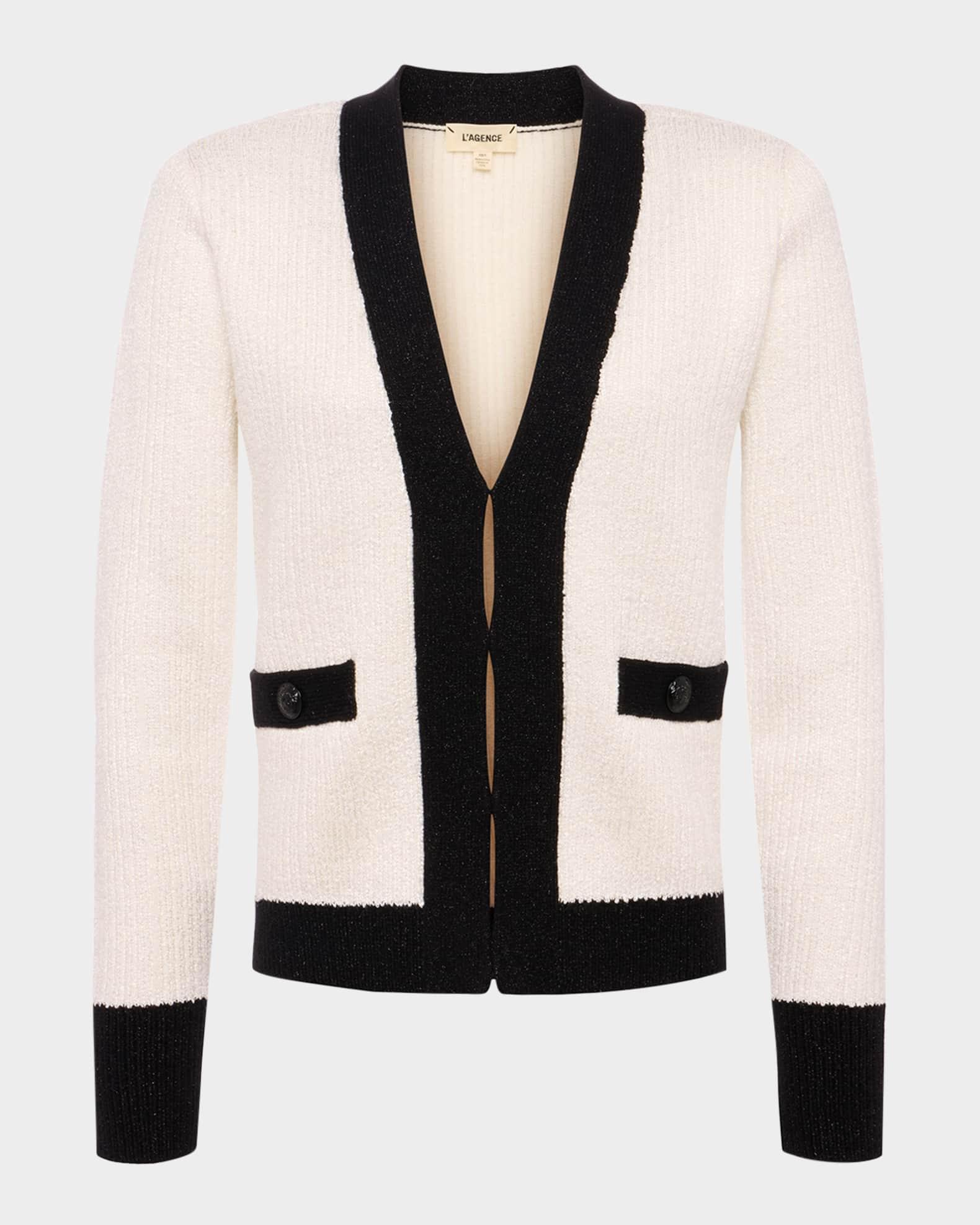 L'Agence "Jinny" sequin-embellished cardigan accented with tonal embossed-dome buttons V neckline; hook closure Long sleeves Relaxed fit Hip length Ribbed cuffs and hem Polyester Dry clean Imported Model is 5'10"/177cm.