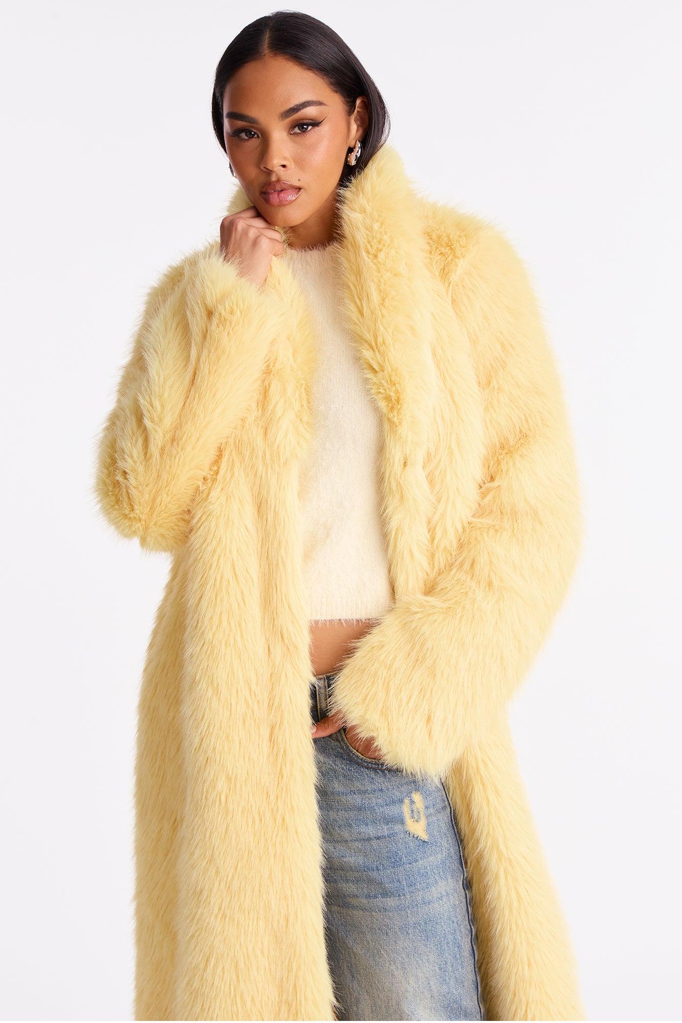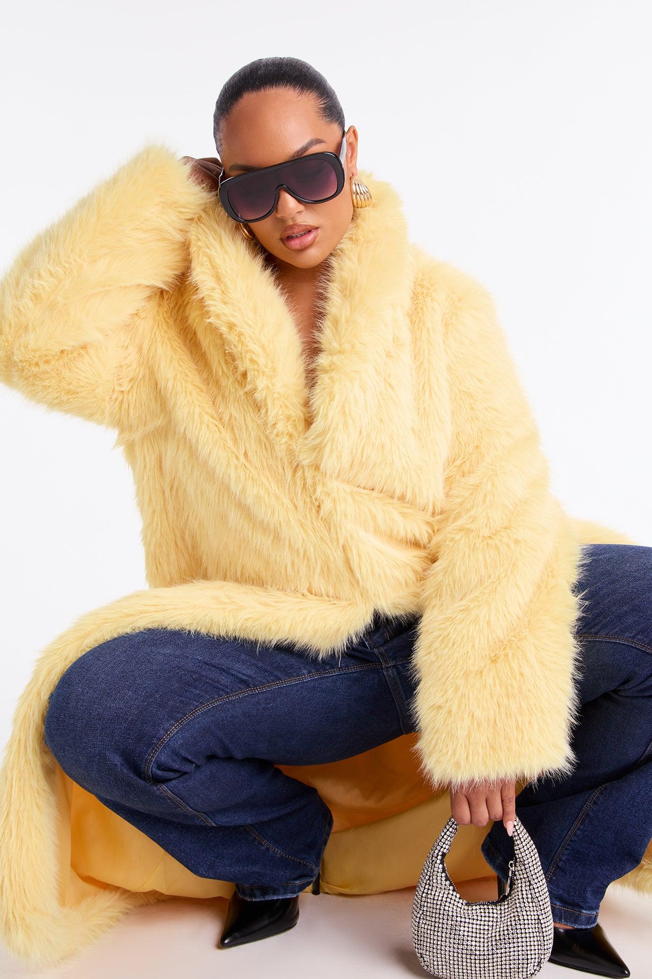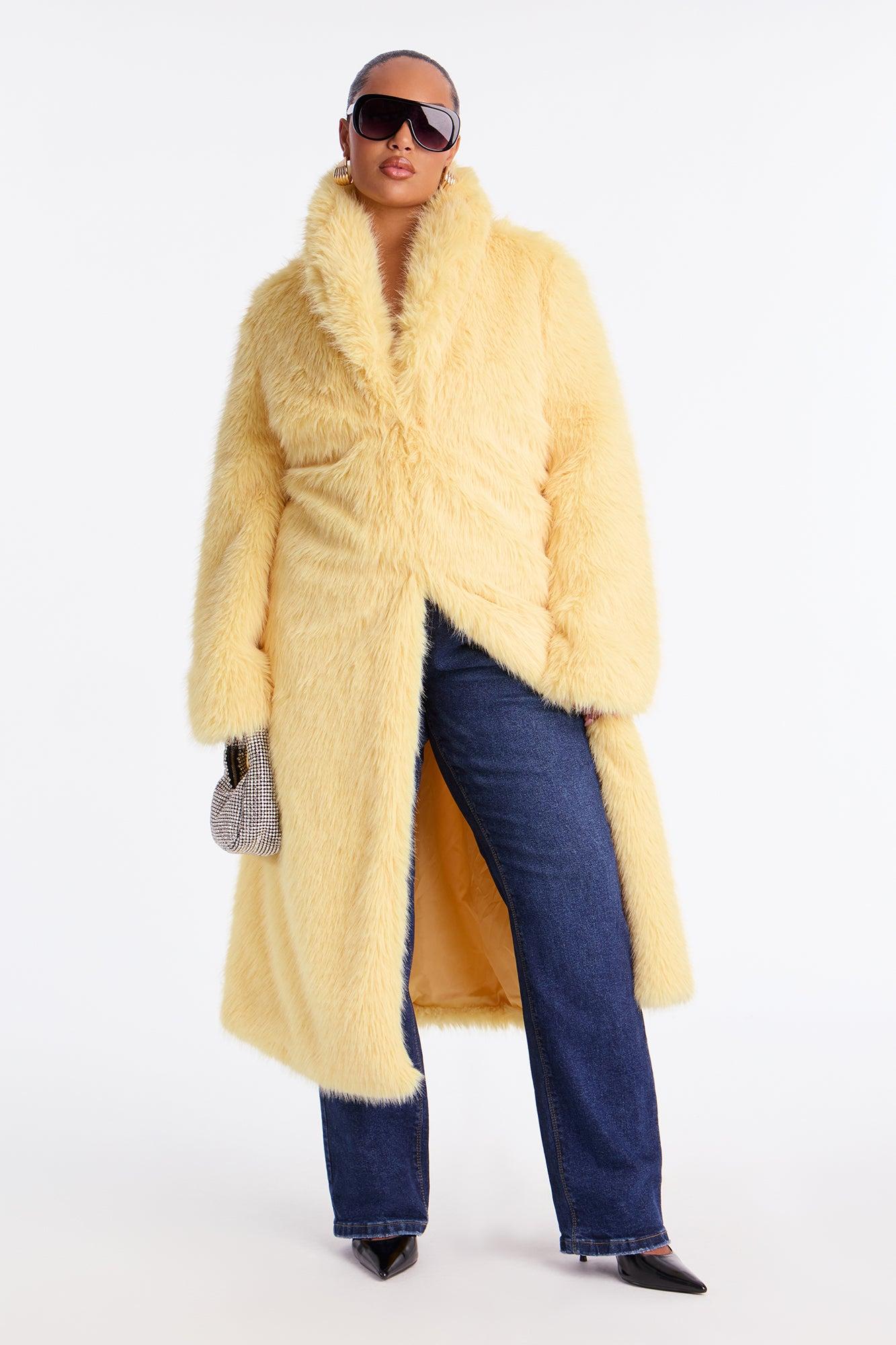 Available In Butter Yellow, Charcoal, Lavender, Royal And White. Trench Coat Collar Long Sleeve Faux Fur Fully Lined Self: 100% Polyester Lining: 100% Polyester Imported California Proposition 65WARNING: Cancer and Reproductive Harm - www.P65Warnings.ca.gov.