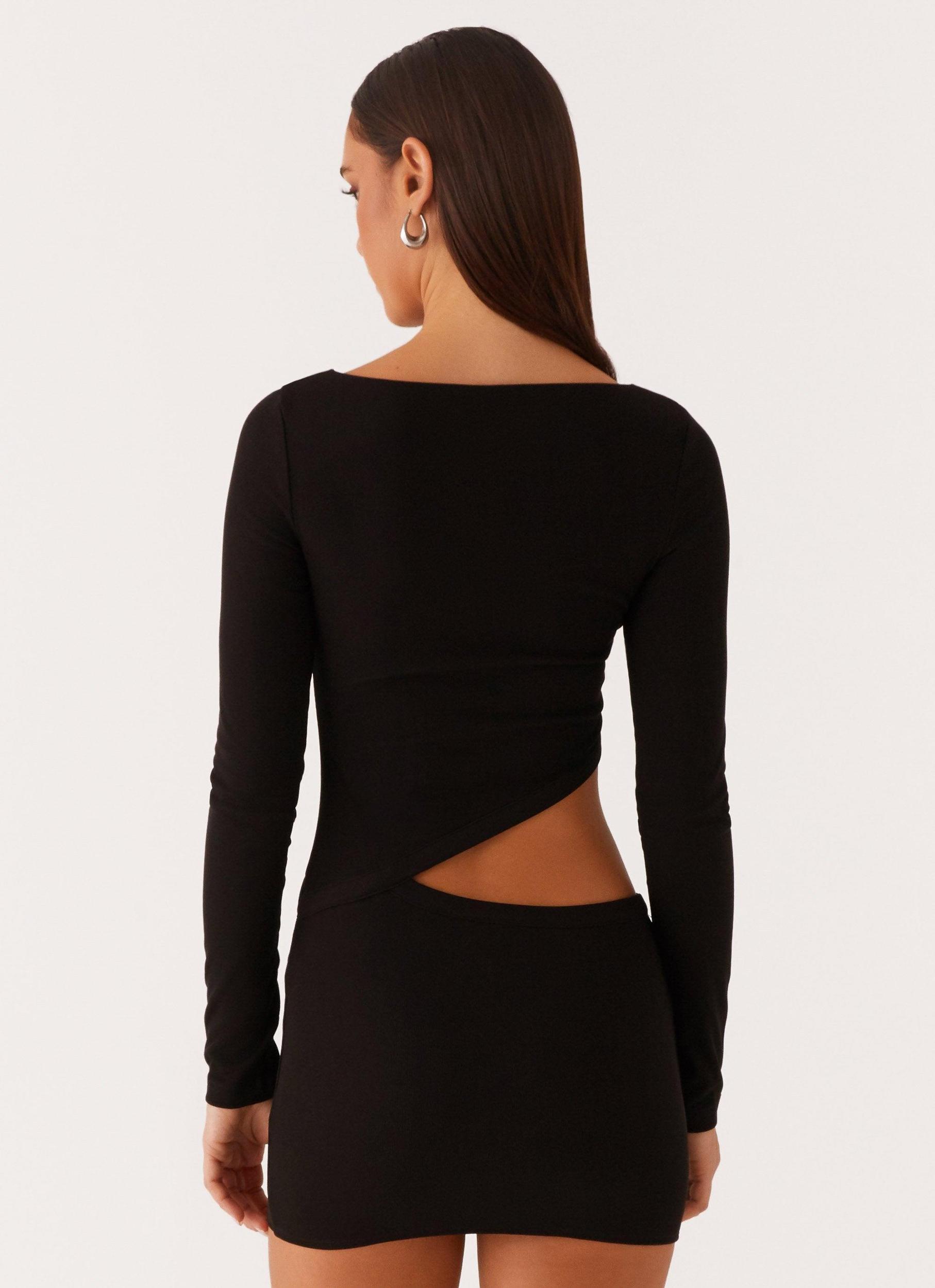Peppermayo Exclusive The Jocelyn Long Sleeve Mini Dress is the perfect combination of sleek and edgy. Made from stretch jersey, it offers a comfortable, figure-hugging fit that moves with you. The self-lined design ensures a smooth, flattering silhouette, while the bold cut-out detail adds a touch of daring sophistication. - Stretch Jersey- Self Lined- Mini Length- Cut out- Long sleeve- 95% Polyester, 5% Spandex Size AU 8 / US 4 garment measurements: