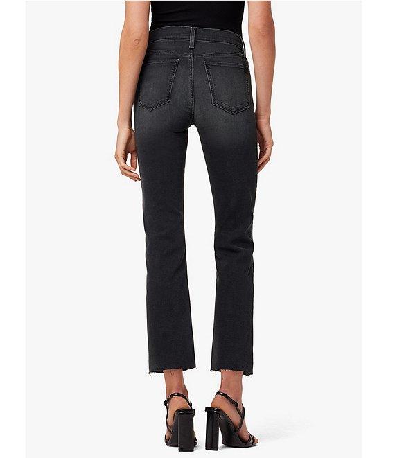 From Joe's Jeans, these jeans feature: Denim fabrication Flared silhouette High rise waistband 5-pocket styling Raw hem Front button and zip closure Approx. 10" rise; 16.5" inseam; 16.5" leg opening Cotton/lyocell/elastane Machine wash Imported.