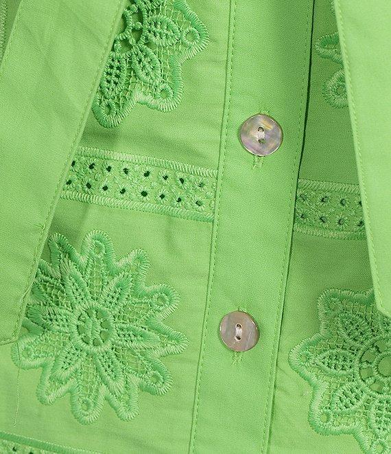 From John Mark, this skirt features: Woven fabrication Windowpane pattern Floral eyelet embroidery front and back Flared silhouette Elastic waistline Tie front detail Side seam functional pockets Inside lining Pull-on construction Approx. 24" length Cotton, embroidery: polyester Machine wash cold/tumble dry low Imported.