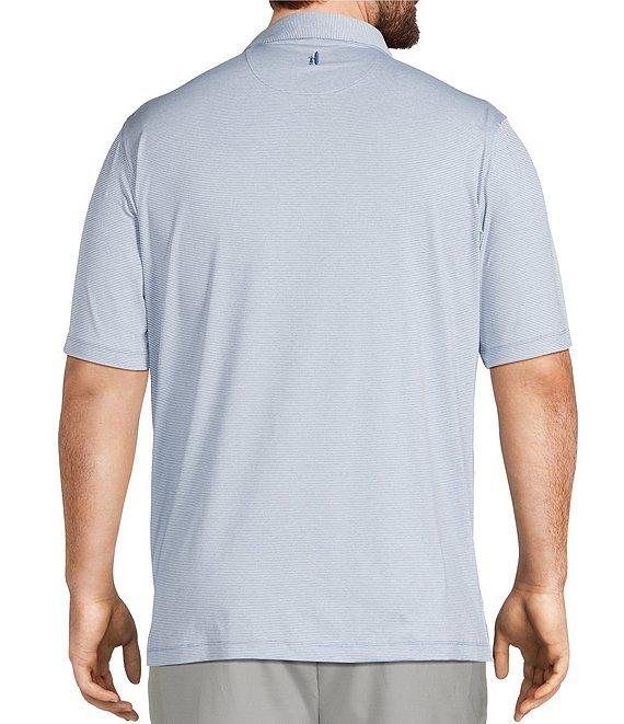 From Johnnie-O, this shirt features: Thin, horizontal stripe pattern Embroidered logo center back yoke Polo collar Short sleeves 3-button placket Side vents Pullover construction UPF 50 sun protection Moisture wicking Stretch jersey fabric Polyester/spandex Machine wash/tumble dry Imported.
