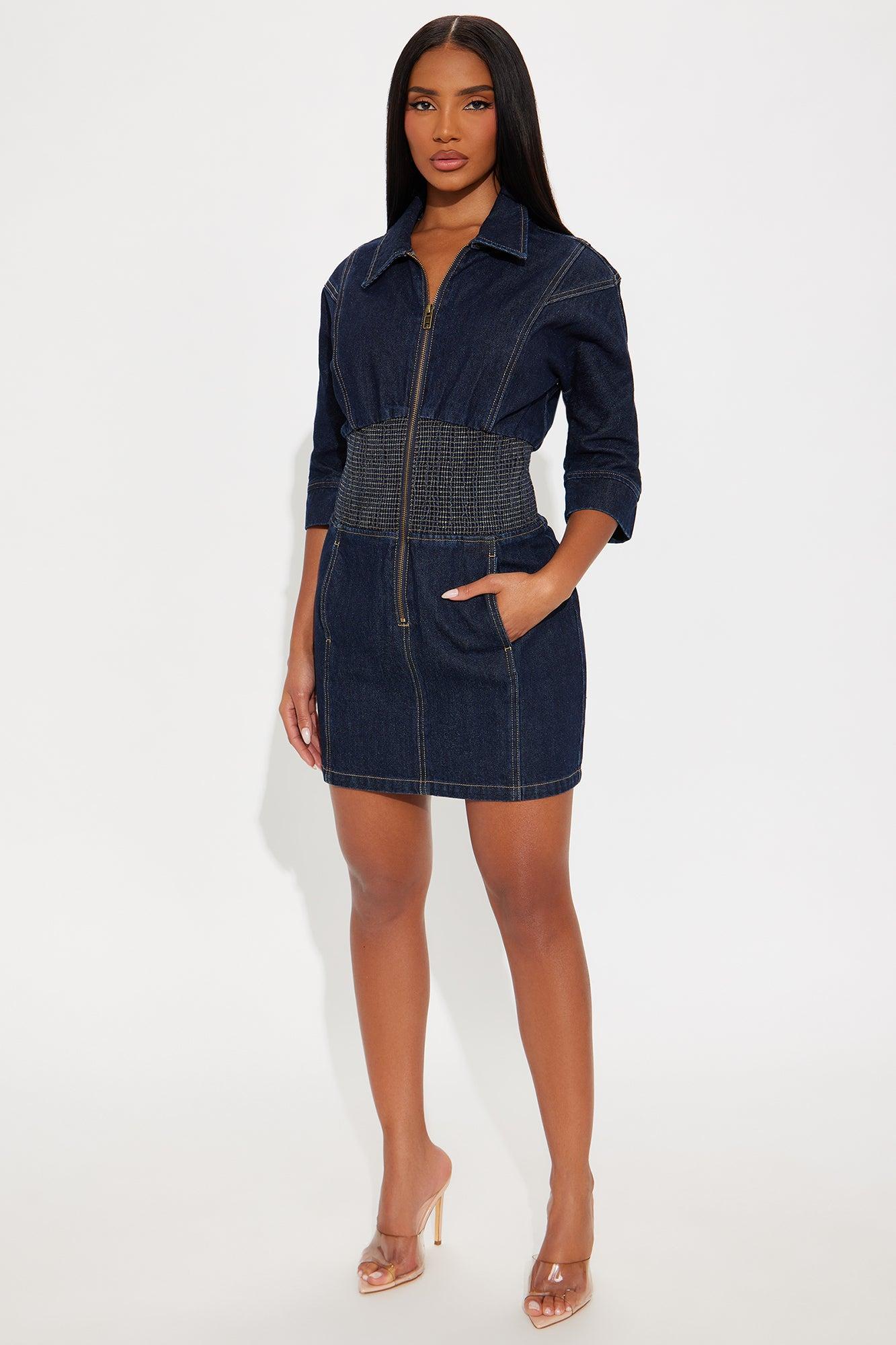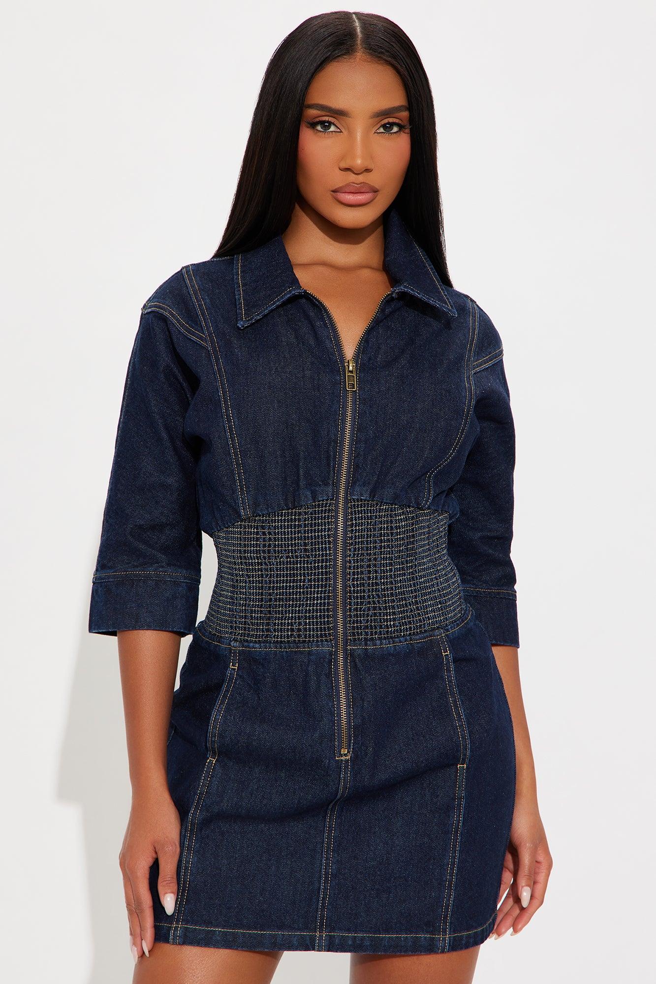 Jolie Collar Denim Mini Dress - Denim