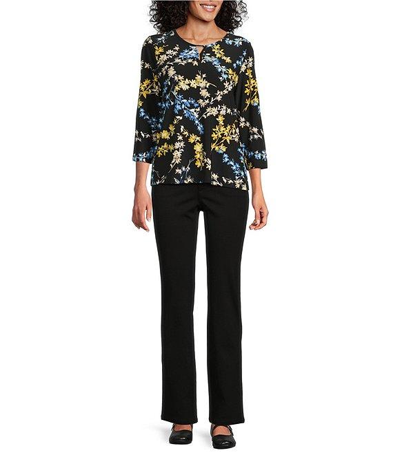 Jones New York 3/4 Sleeve Keyhole V-Neck Top