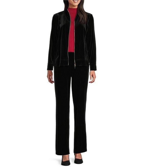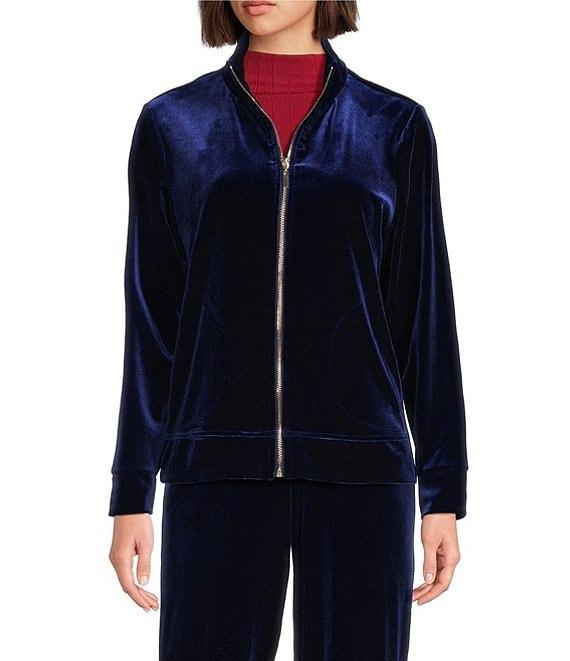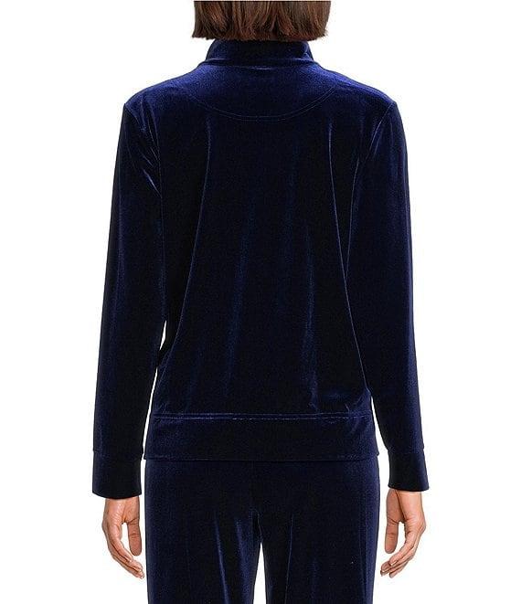 Jones New York Velour Mock Neck Long Sleeve Zip Front Jacket