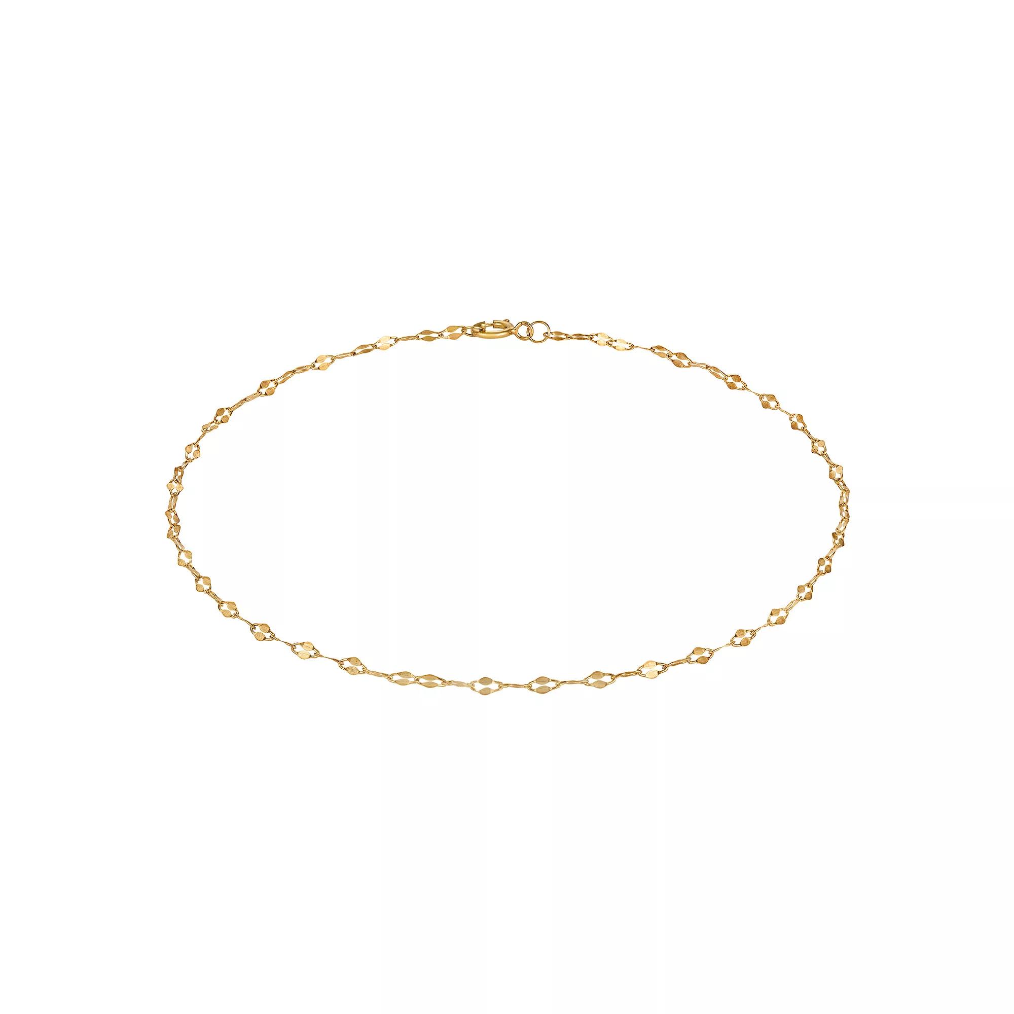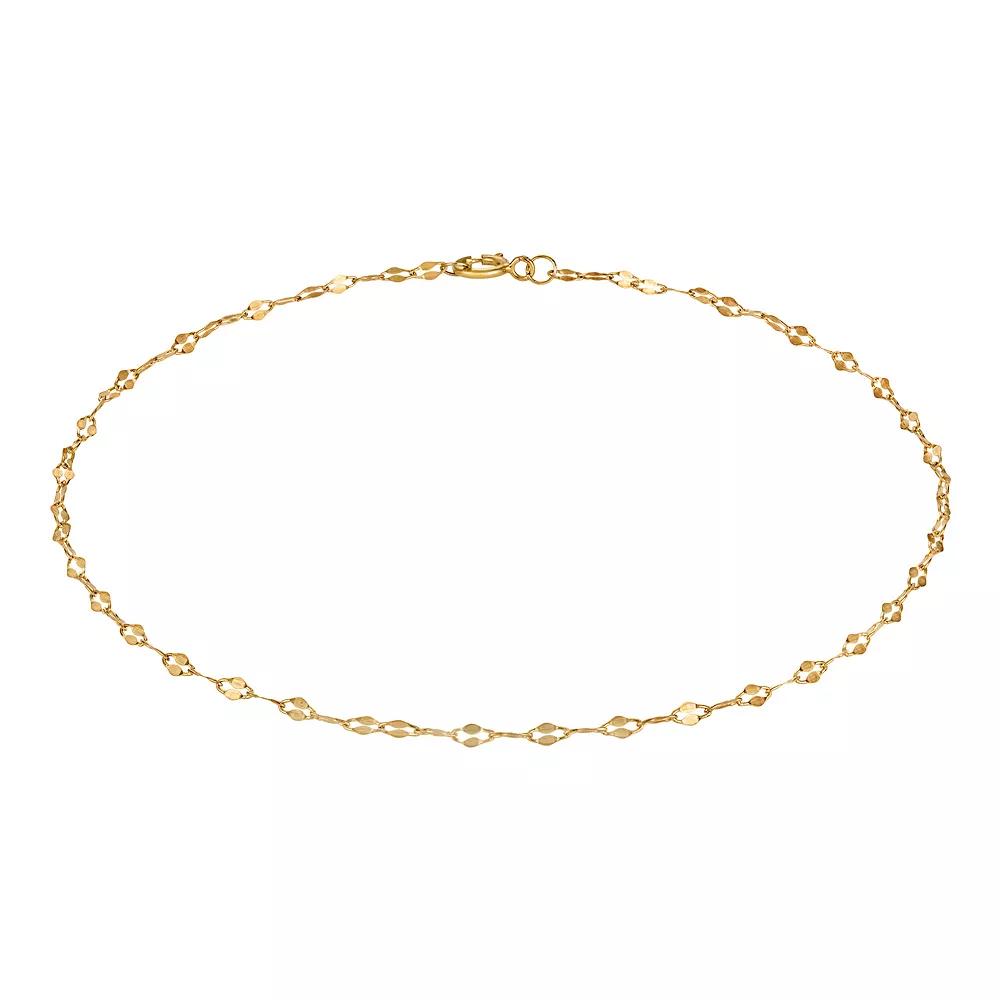 Finish off any ensemble with this 14k gold Jordan Blue mirror link chain anklet. Click on this JEWELRY & WATCHES GUIDE to learn about fit, styles, materials and more! Finish off any ensemble with this 14k gold Jordan Blue mirror link chain anklet. Click on this JEWELRY & WATCHES GUIDE to learn about fit, styles, materials and more! FEATURES Chain type: mirror link Length: 10 in. Clasp: spring-ring Nickel free Metal: 14k gold Finish: polished Packaging: velvety pouch Size: 10. Color: Yellow. Gender: female. Age Group: adult.