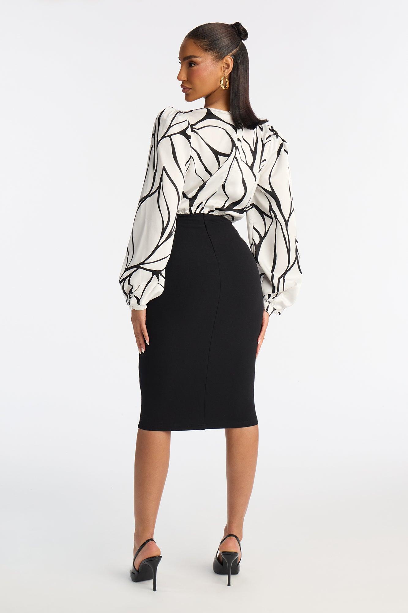 Josephine Satin Midi Dress - White/Black Female