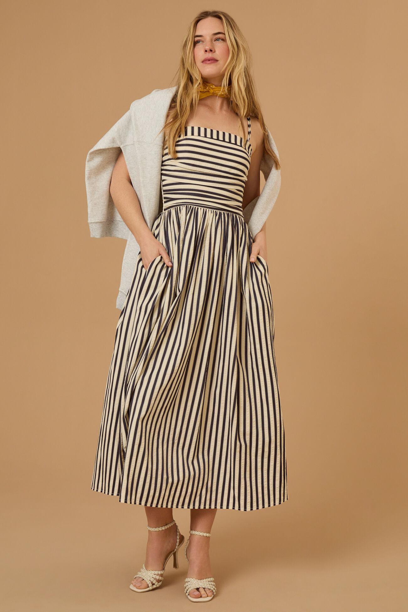 Our Josey Stripe Maxi Dress is the perfect combination of relaxed elegance and timeless style. The bold stripes create a flattering, elongated silhouette, while the strapless design highlights your shoulders for a chic, breezy look. The flowing maxi length offers comfort and movement, making it ideal for summer days, beach outings, or casual evening events.