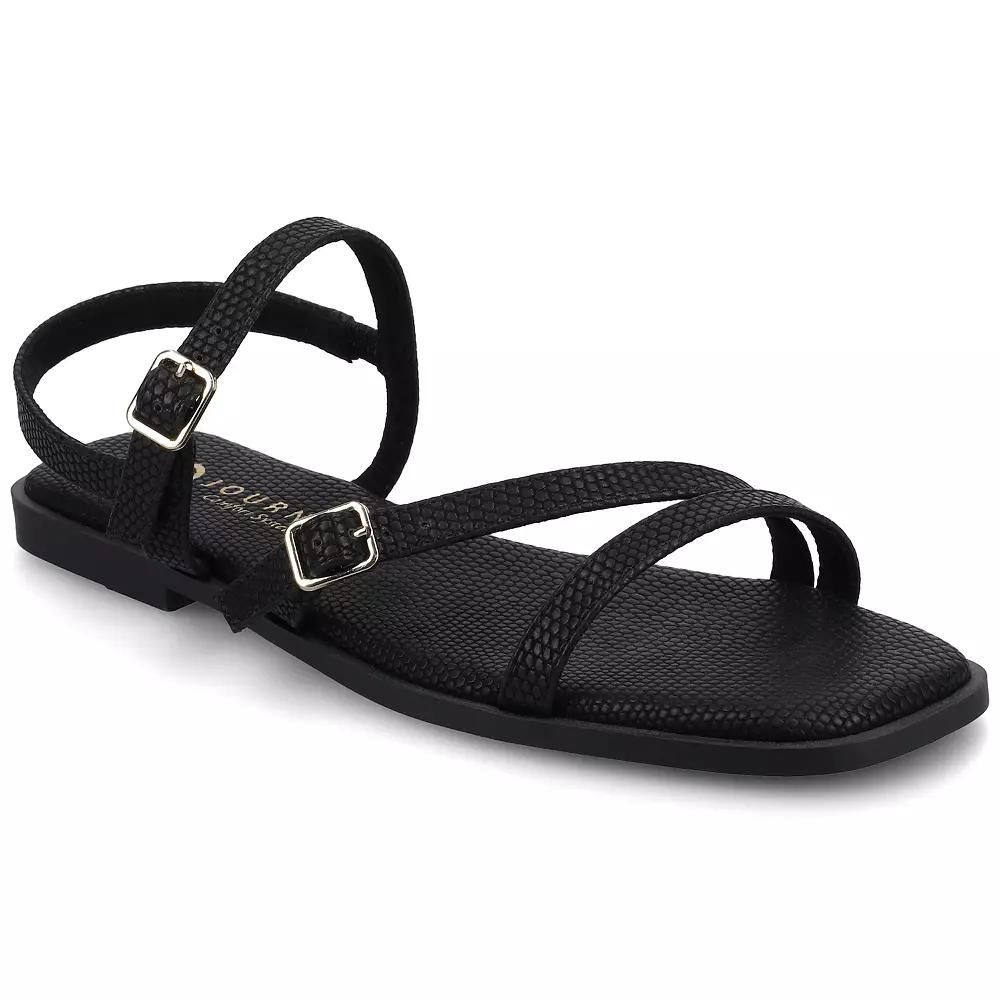 Step into sunny days with these delightful flat sandals that bring both style and comfort to your every adventure. With their strappy design and perfect ankle support, they are your go-to choice for everything from brunch with friends to leisurely strolls in the park, ensuring your feet stay happy while you shine! Click this FOOTWEAR GUIDE to find the perfect fit and more! - https://www.kohls.com/feature/shoesizeguide.jsp. FEATURES: Comfort design, Strappy style, Flat sandal construction. MATERIAL & CARE: Man-made upper, Man-made outsole, Man-made midsole, Synthetic lining, Foam footbed, Spot clean. DETAILS: Buckle closure, Open toe, Imported. Size: 10. Color: Black Lizard. Gender: female. Age Group: adult.