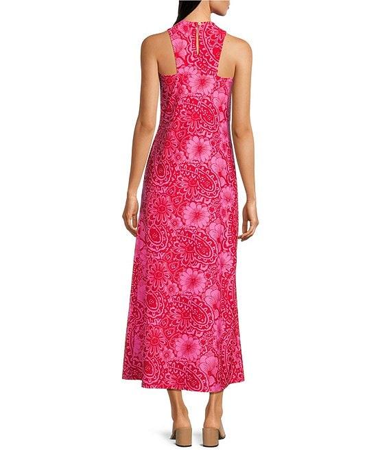 Jude Connally Bernadette Painted Paisley Print High Halter Neck Sleeveless Maxi Dress