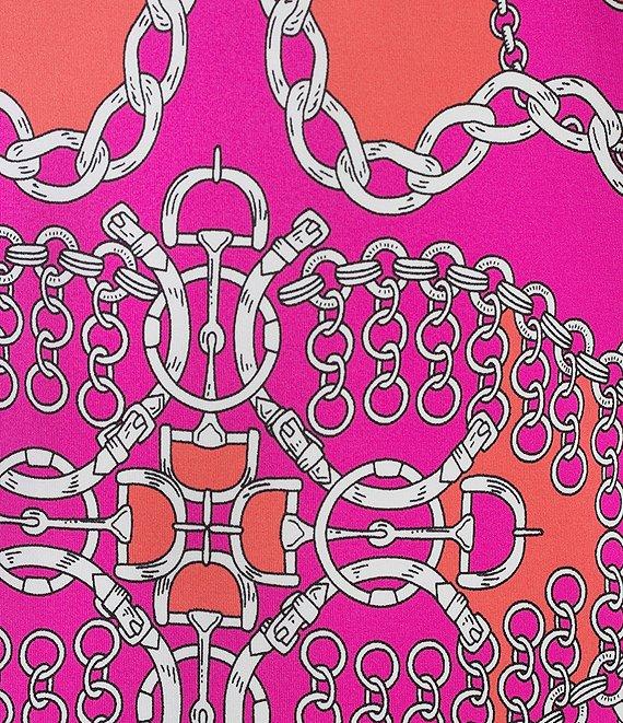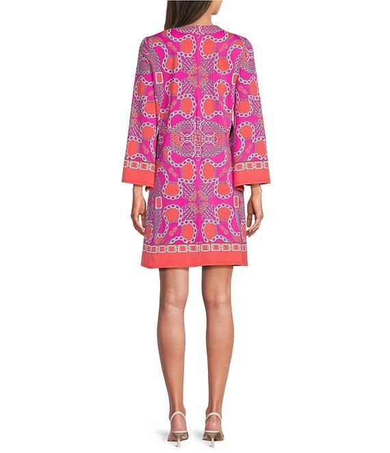 Jude Connally Renata Heritage Chains Print Crew Neck Long Bell Sleeve Swing Dress