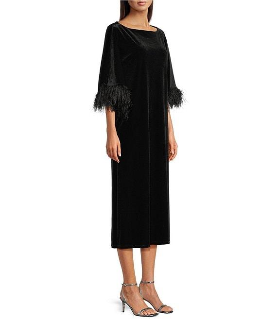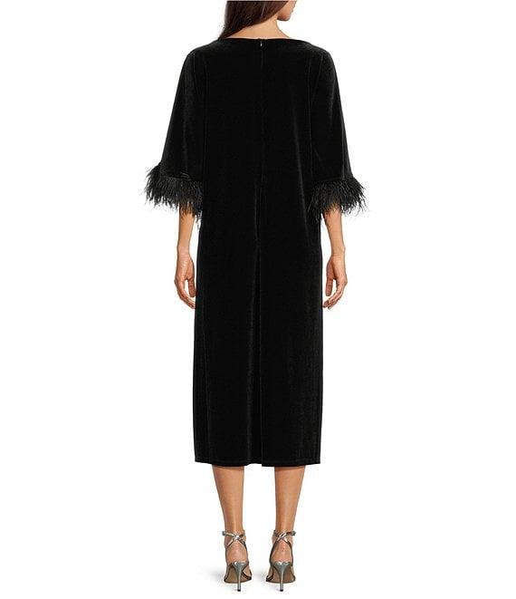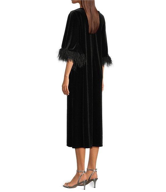 Jude Connally Royce Velvet Round Neck Elbow Sleeve Feather Midi Caftan Dress