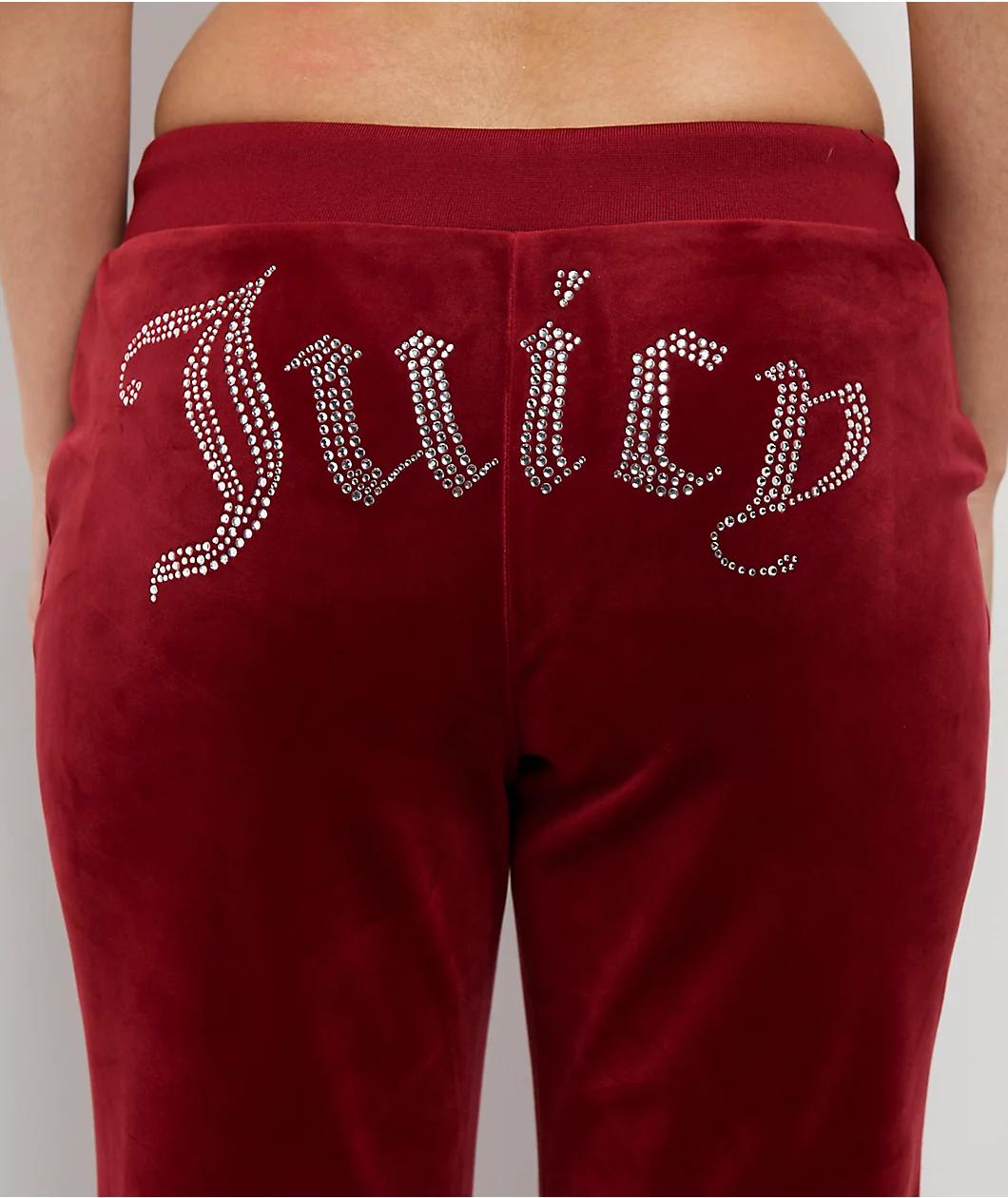 The creatives at Juicy Couture welcome the OG Big Bling track pants in a "Dahlia" red colorway. Providing a Y2K vibe, these lounge pants are constructed with a soft velour fabric with shiny rhinestone branding on the back for a luxe look. These cute,