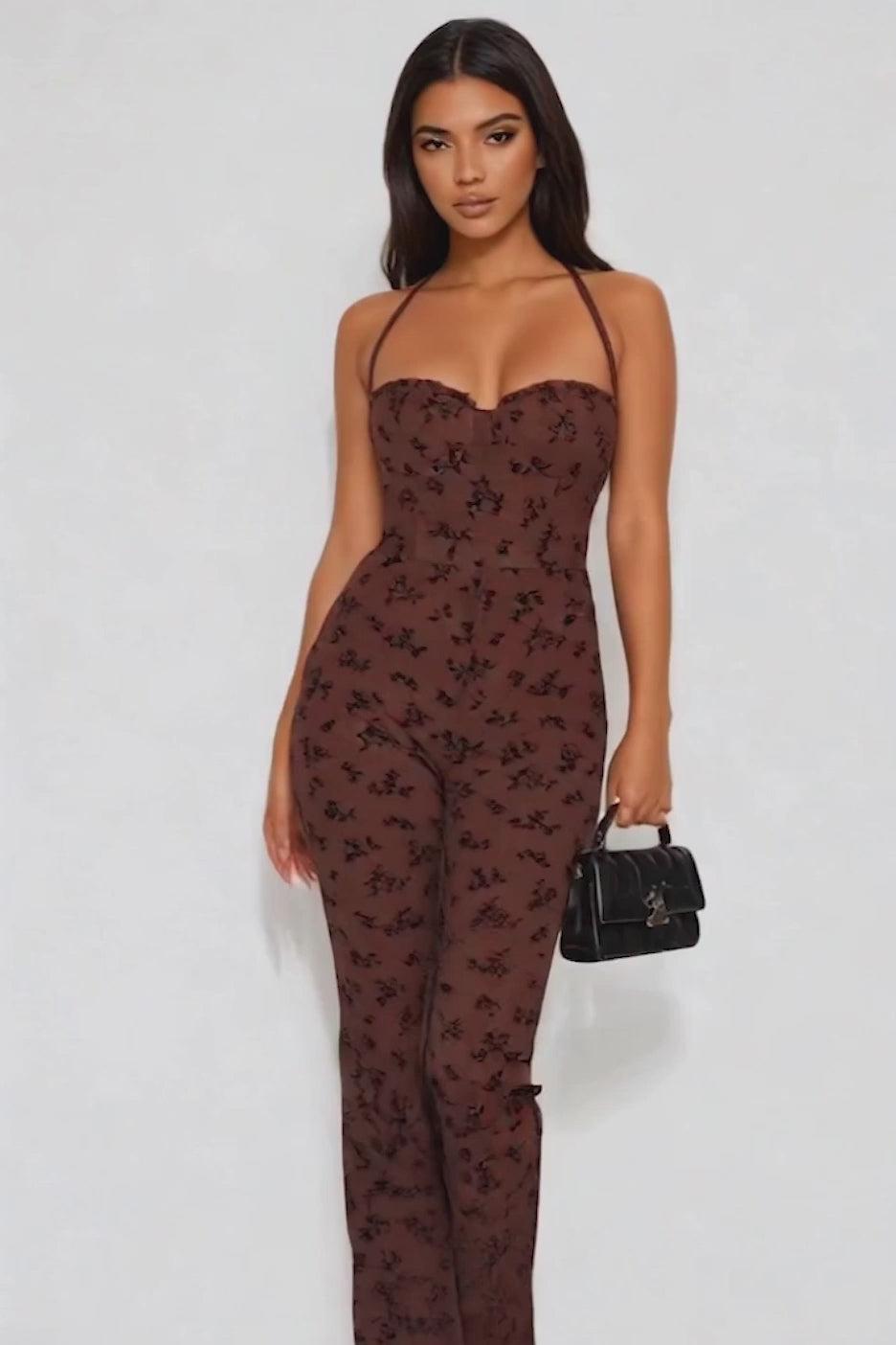 Julia FlockedJumpsuit - Chocolate