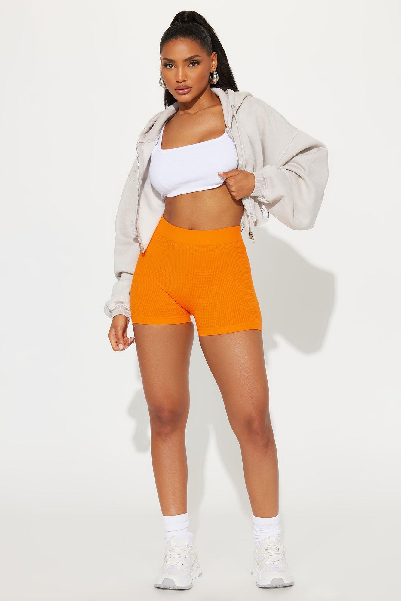 Ariana Heavy Ribbed Biker Short Set - Orange