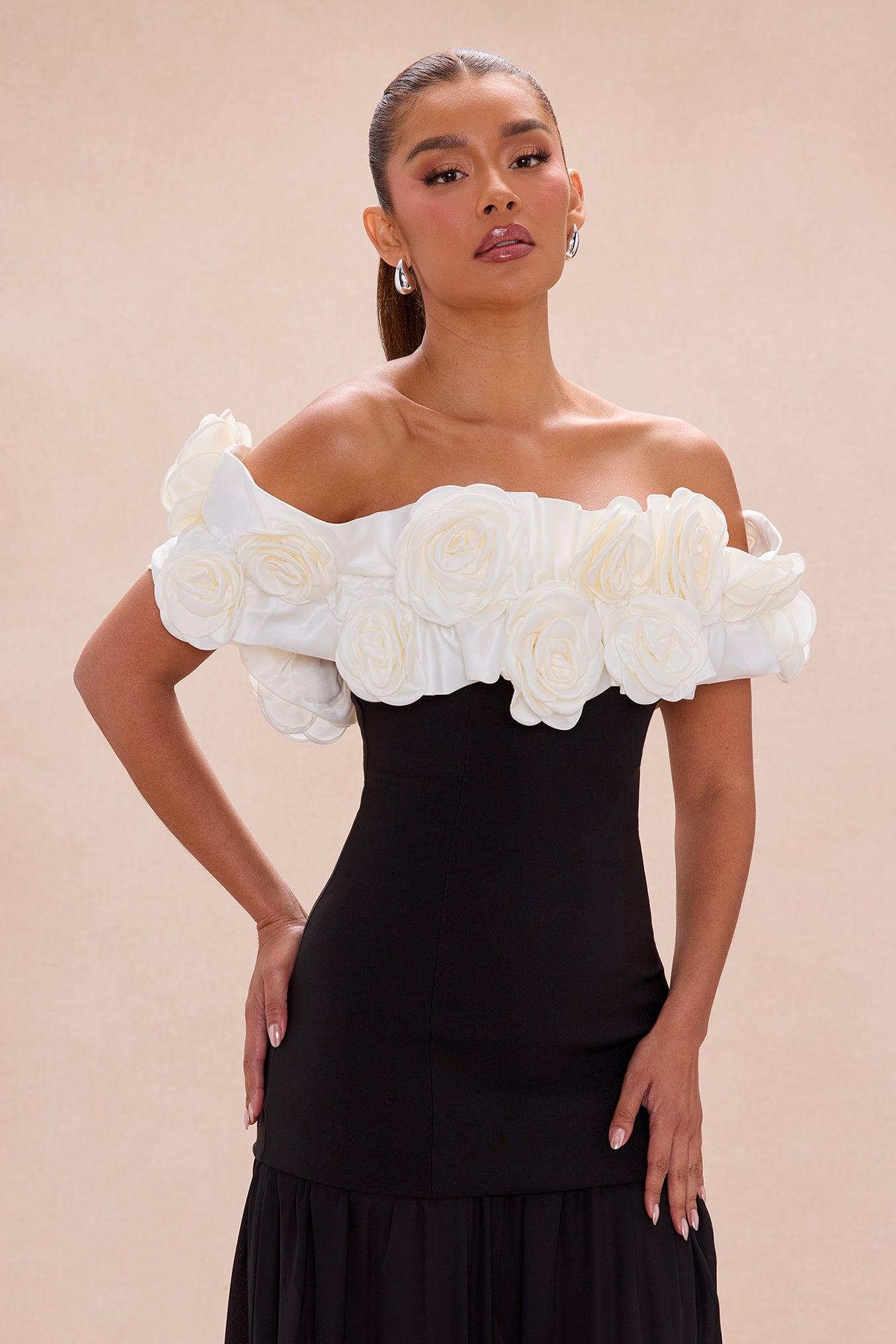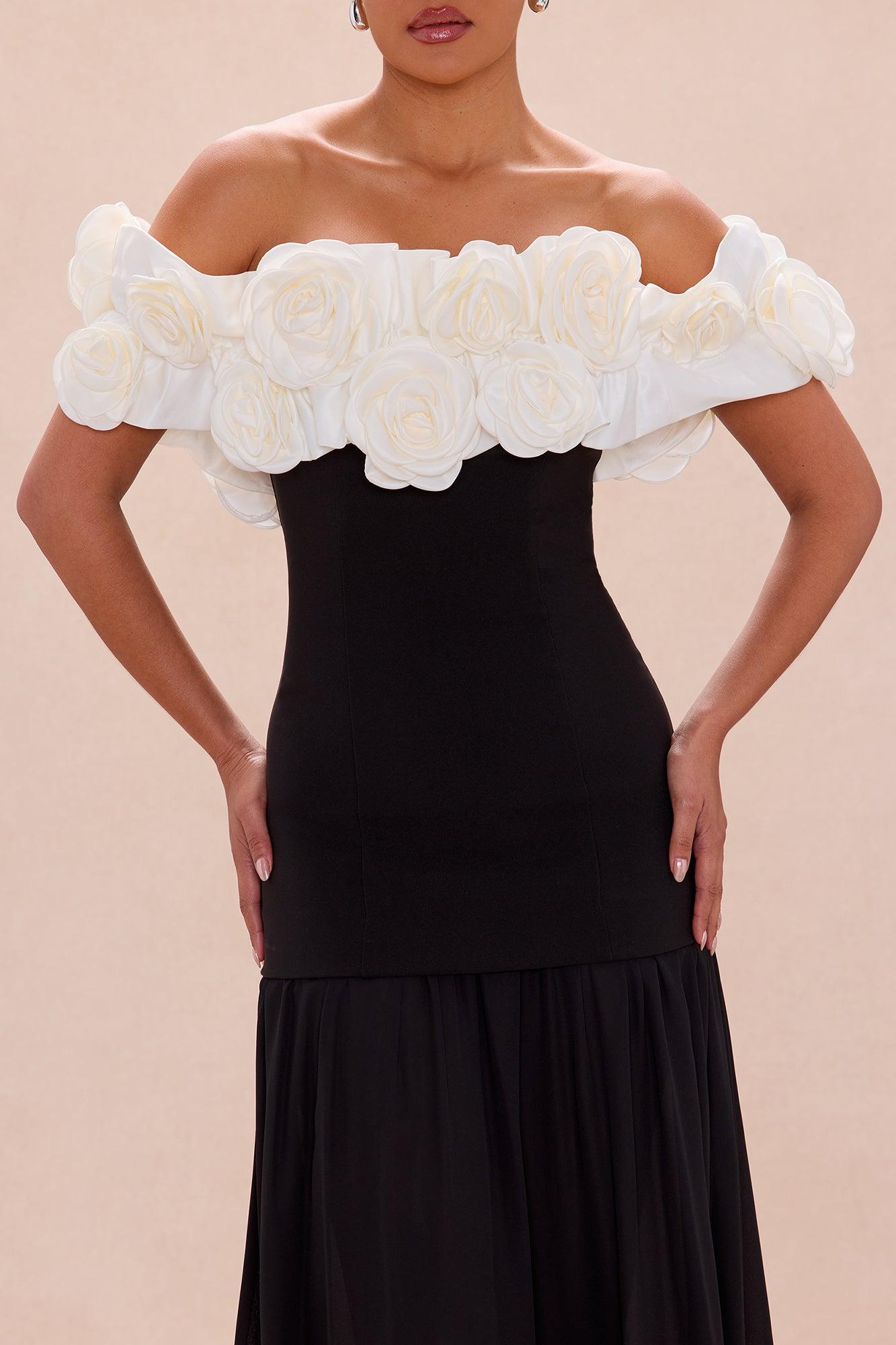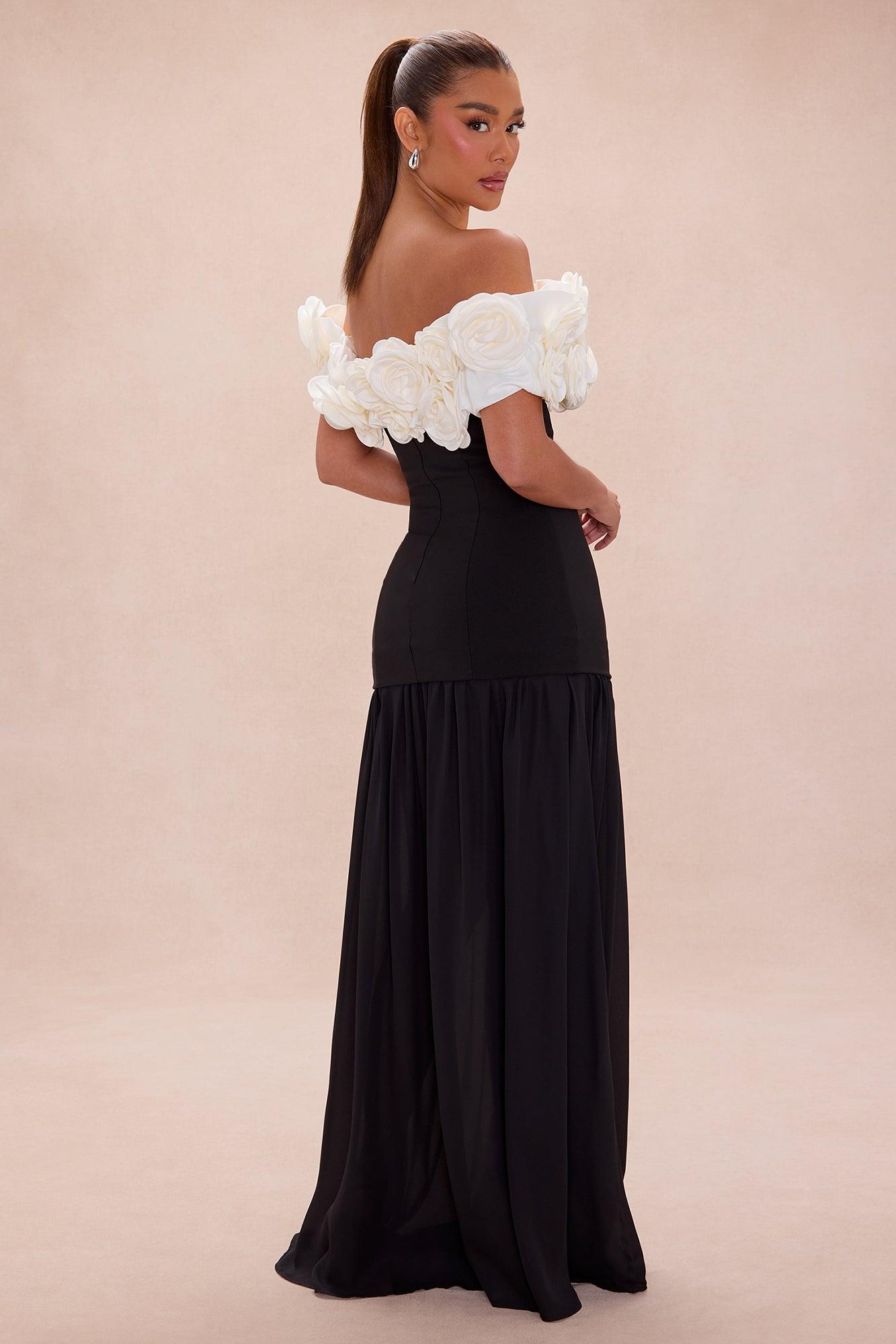 Julianna Drop Waist Rosette Gown - Black/White Female