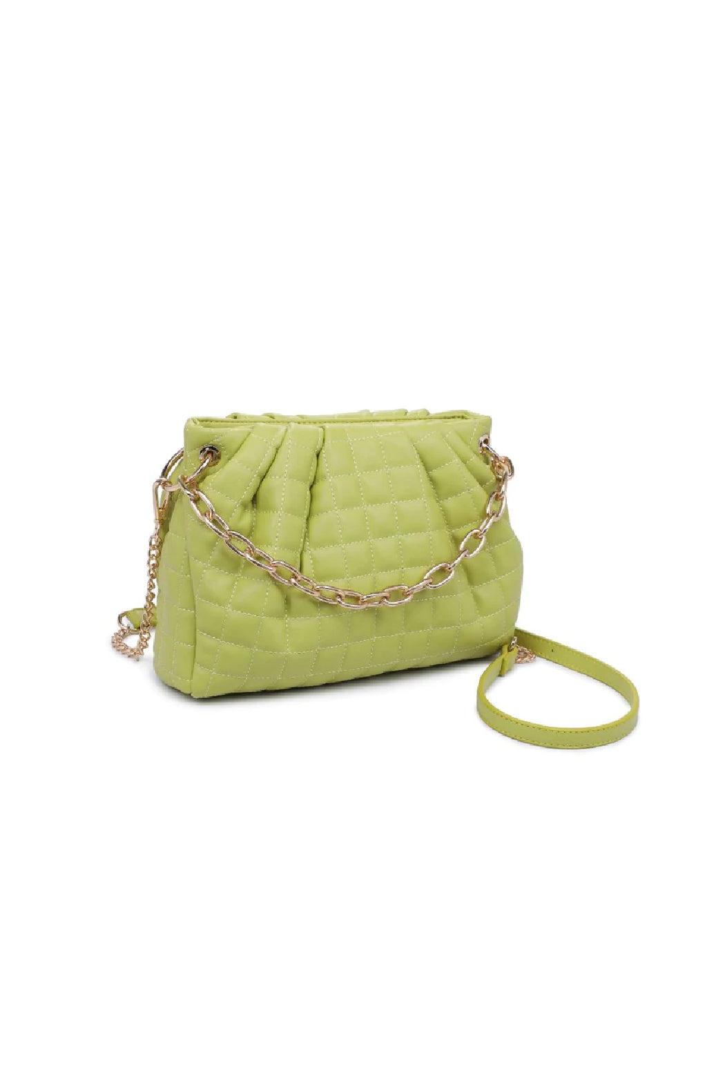 Exterior Details: All-over quilted pattern, chunky gold chain + hardware