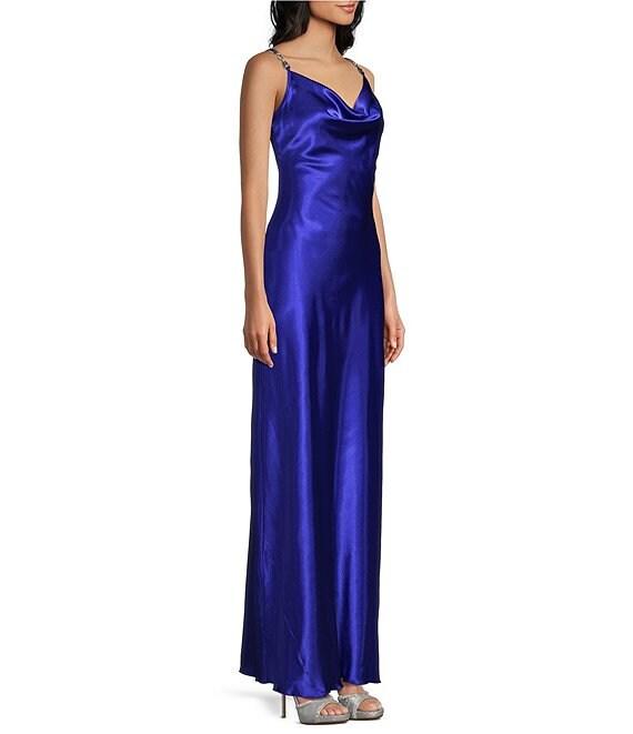 Jump Rhinestone Trim Drape Neck Long Dress