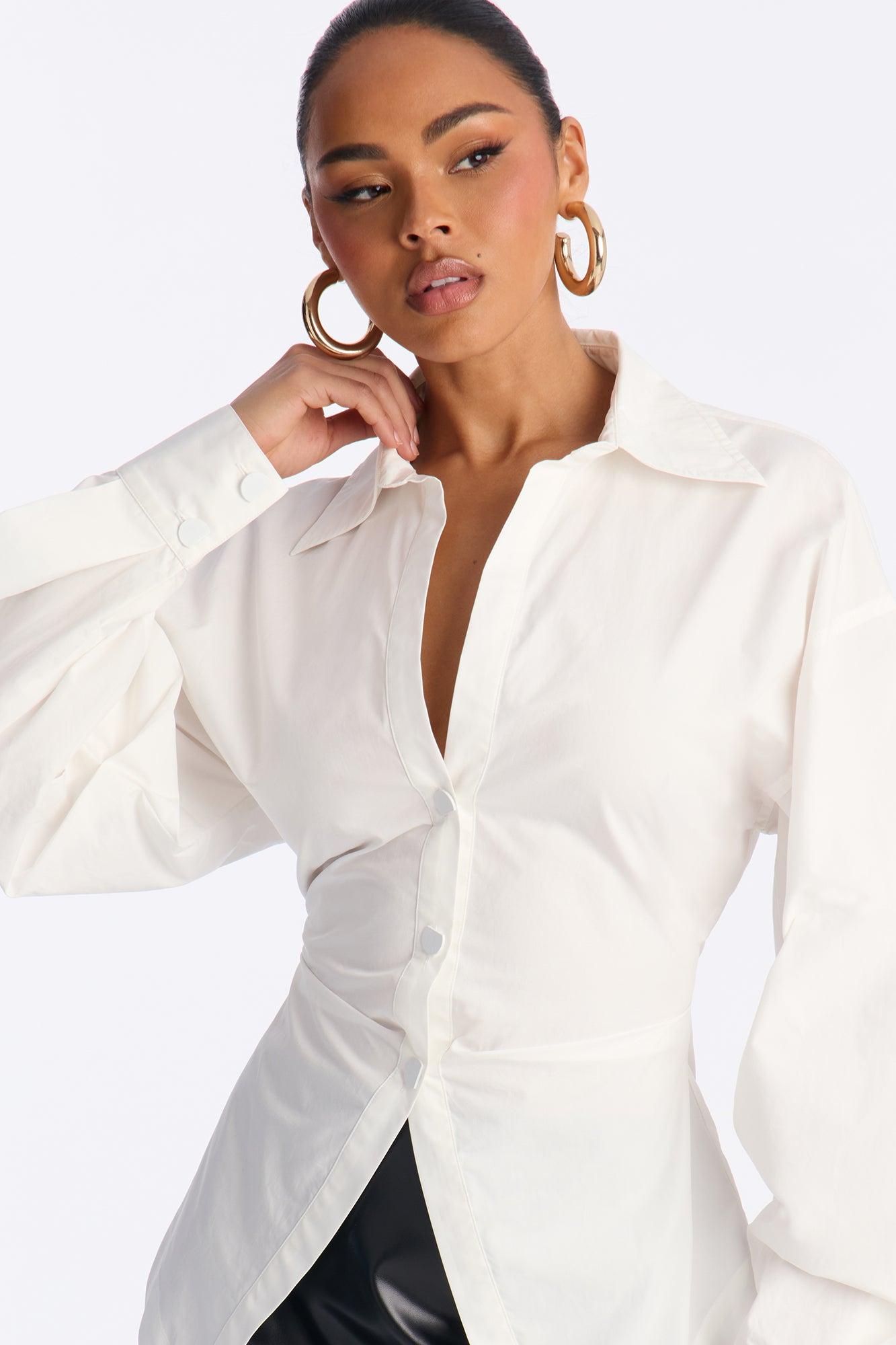 Junie Oversized Button Down Top - White Female