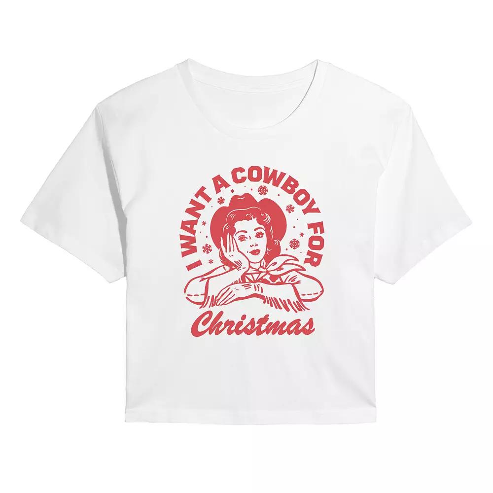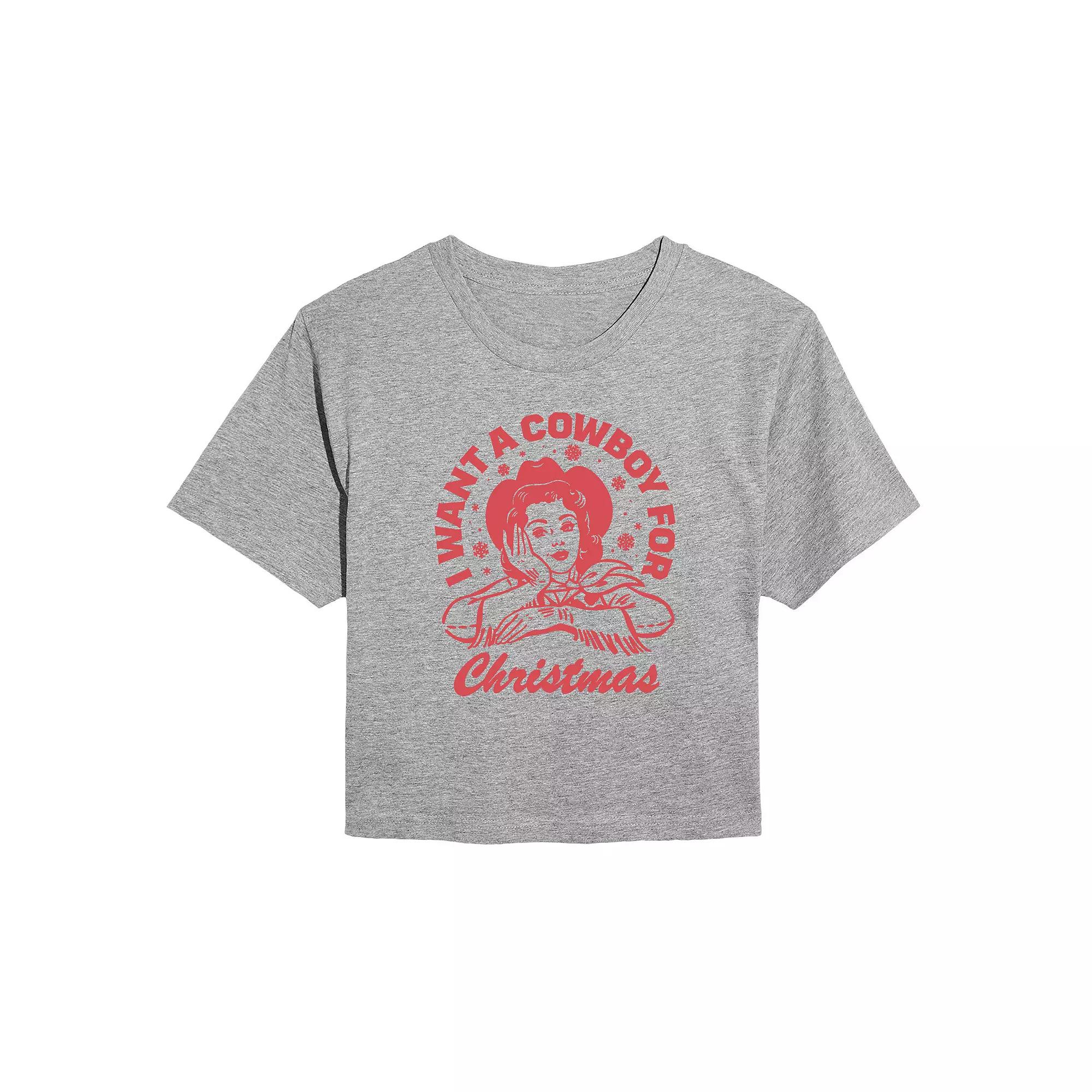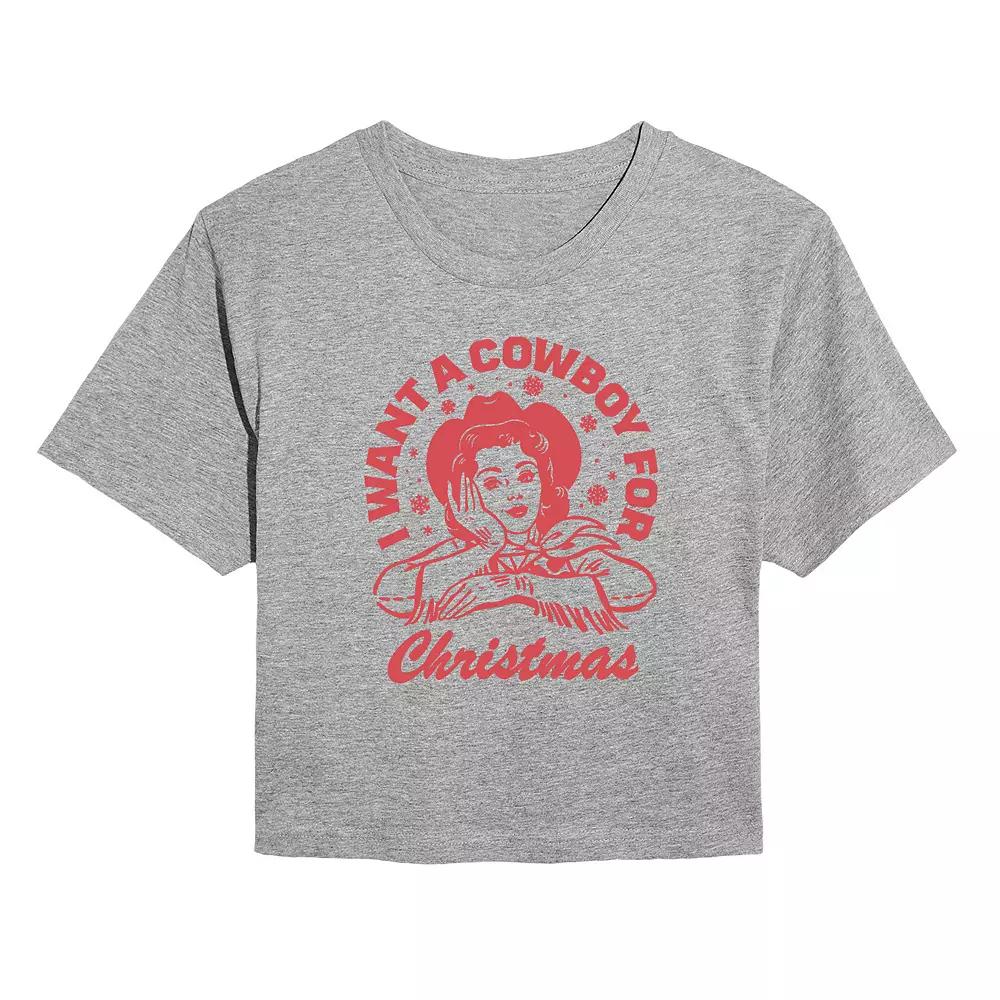 Get ready to spread some holiday cheer with this spirited graphic tee, perfect for expressing your festive wish for a cowboy this Christmas. Its cropped cut and playful design make it an ideal choice for fun holiday gatherings or casual outings, letting your style shine while you celebrate the season. Click on this WOMEN'S GUIDE to find the perfect fit and more! - https://www.kohls.com/feature/womens-fit-guide.jsp. FIT & SIZE: Cropped fit. DETAILS: Crewneck, Short sleeves, Imported. MATERIAL & CARE: Solid colors: Cotton, Heather colors: Cotton/Poly blend, Machine wash. Size: Medium. Color: Heather Gray. Gender: female. Age Group: adult.