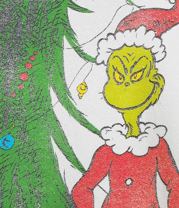 From Junk Food, this sweatshirt features: Round neck Long sleeves "Grinch" graphic on the front Banded cuffs and hem Fleece inside Pullover styling Cotton/polyester Machine wash/tumble dry low Imported