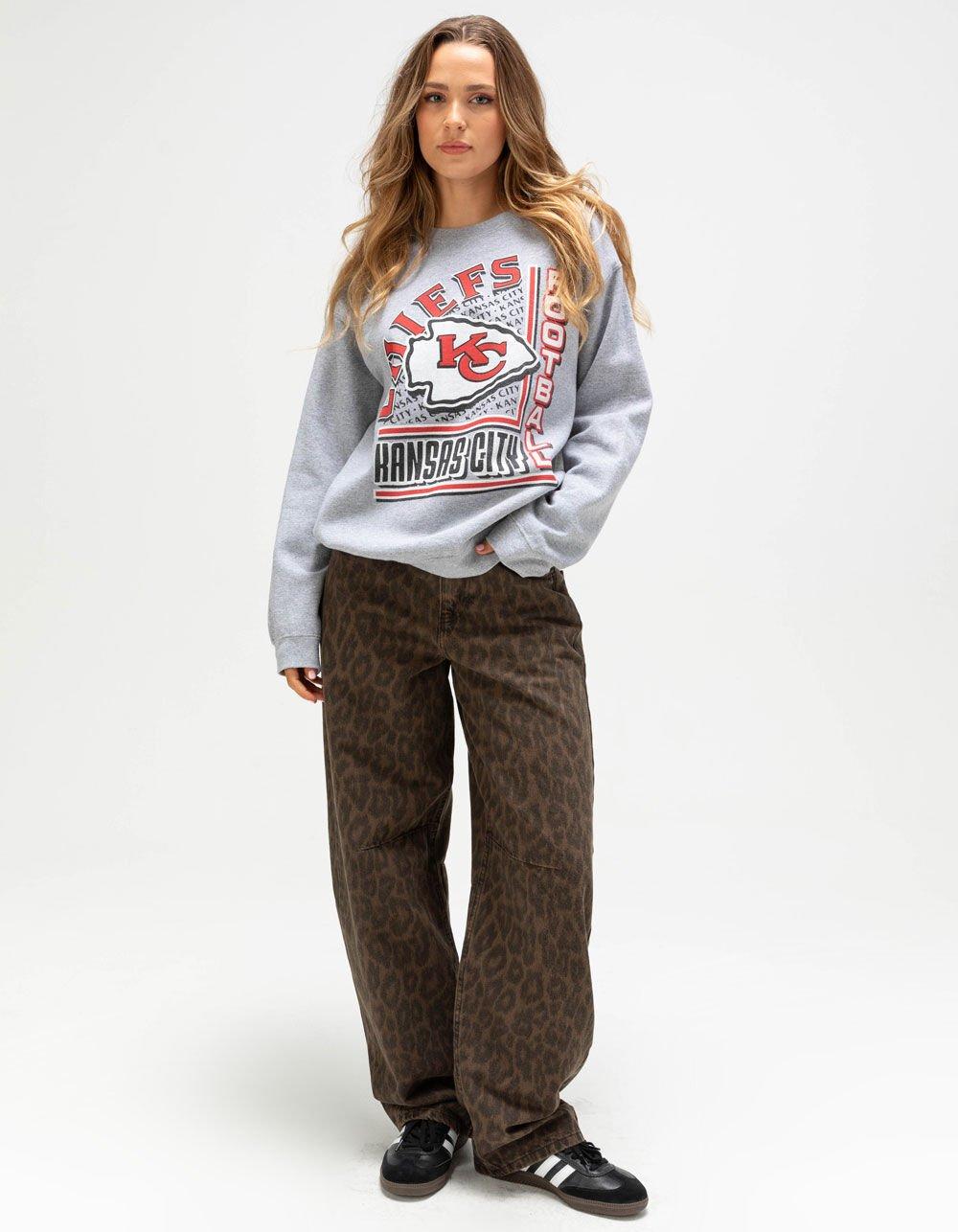 JUNK FOOD Kansas City Chiefs Backfield Womens Crewneck Sweatshirt - HEATHER GRAY