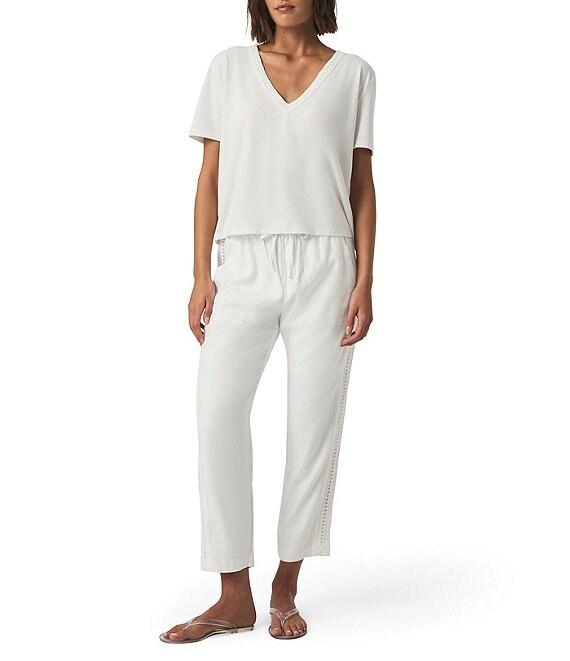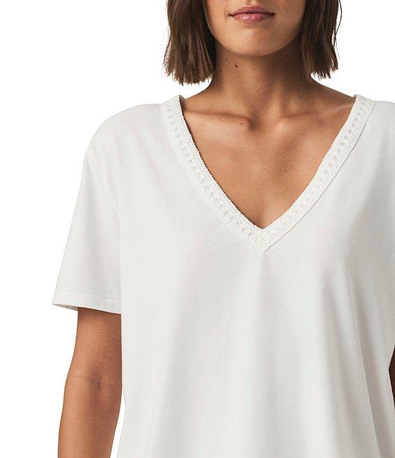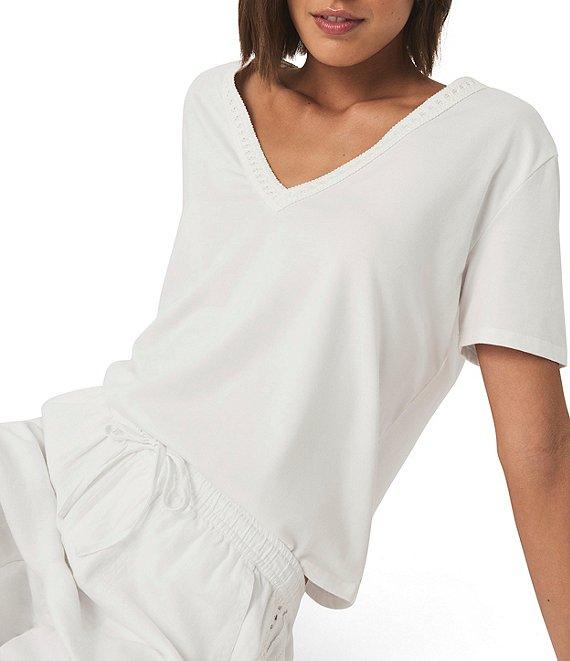 Kacey Crochet Knit V-Neck Short Sleeve Tee Shirt