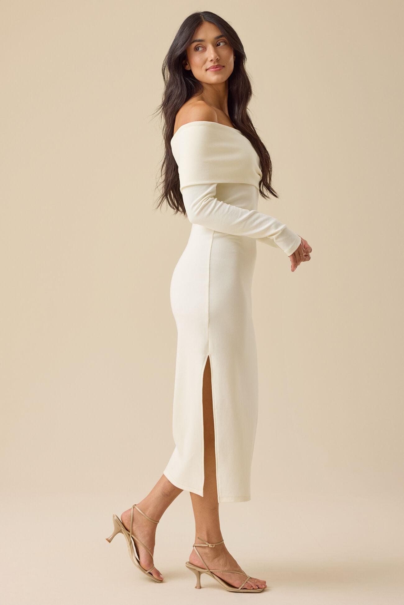 This long sleeve, off-the-shoulder maxi dress hugs your curves with a flattering fitted silhouette, while the soft, stretchy fabric keeps you effortlessly comfortable. Perfect for day-to-night wear, it blends elegance and ease in every step.