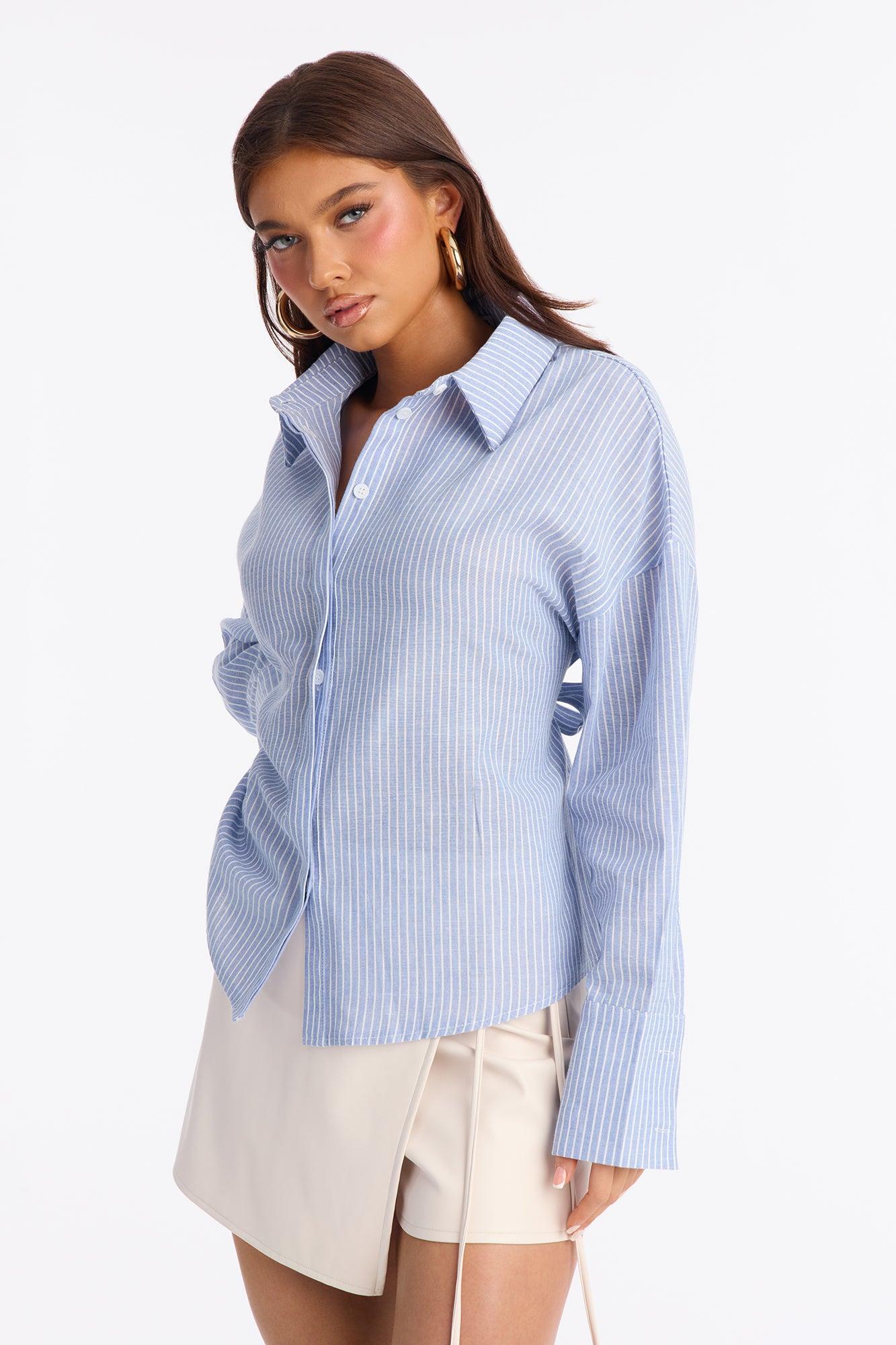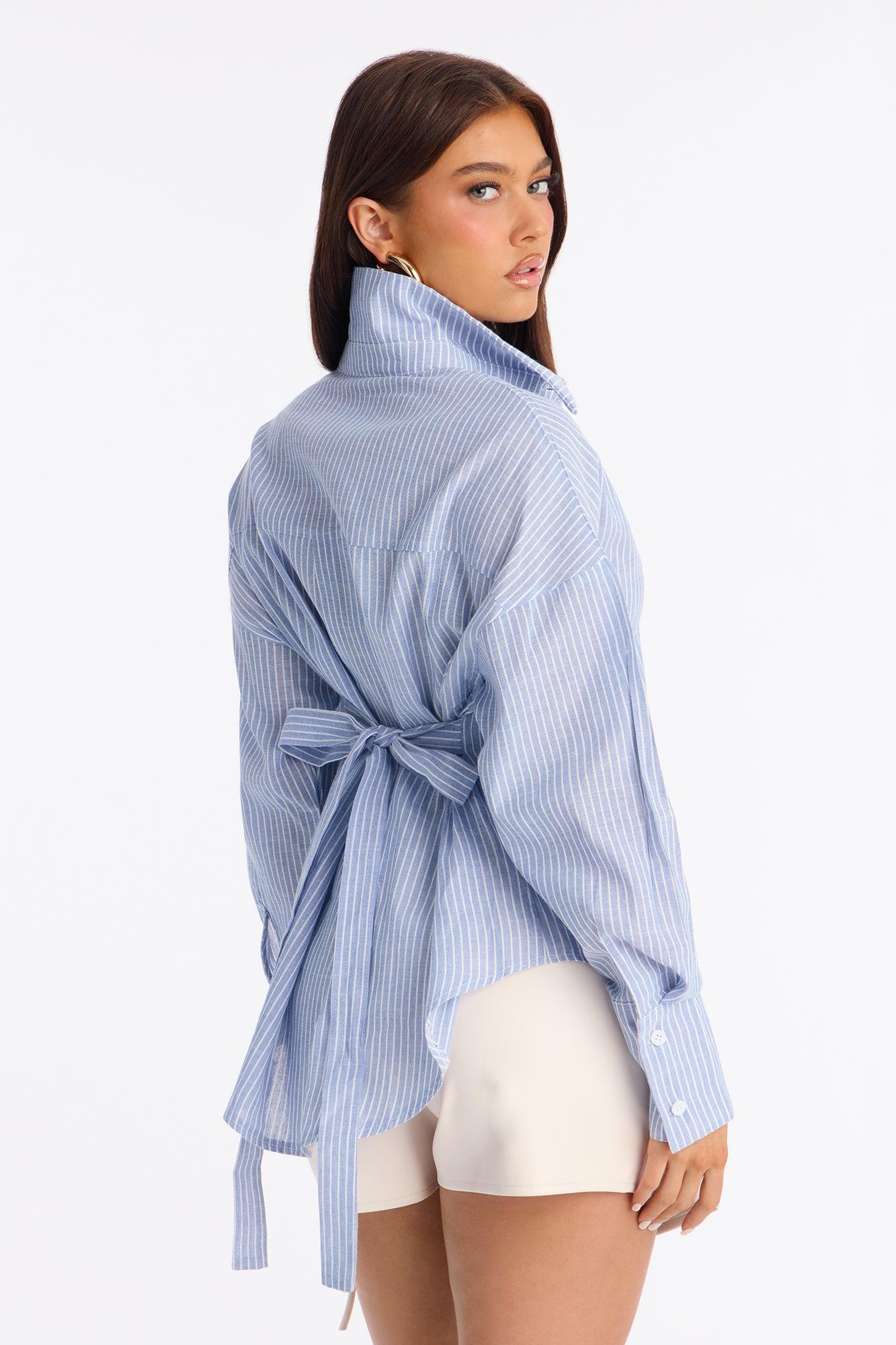 Kaia Tie Back Oversized Striped Linen Shirt - Blue/combo Female