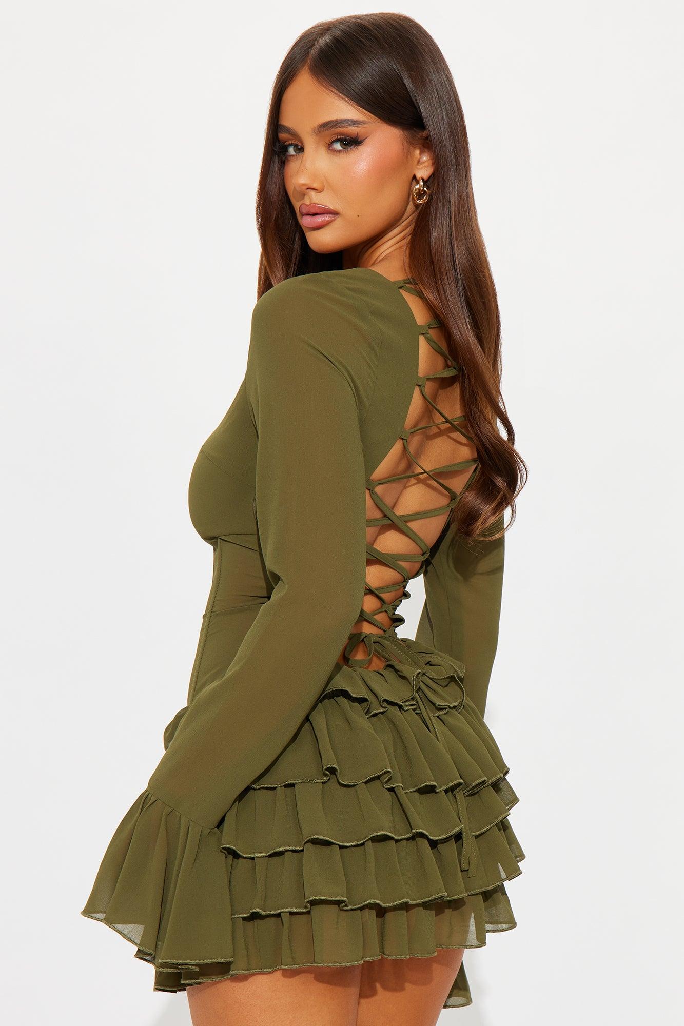 Kalani Ruffle Chiffon Mini Dress - Olive Female