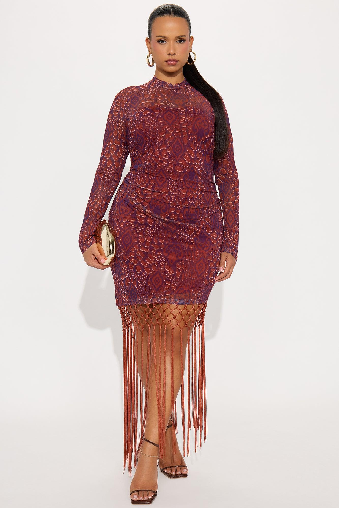 Karelle Mesh Fringe Mini Dress - Red/combo Female