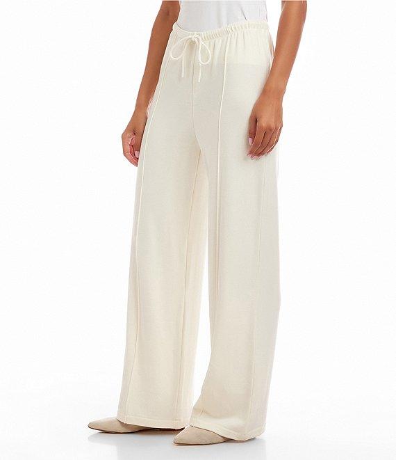 From Karen Kane, these sweatpants feature: Brushed stretch double-knit fabrication Slightly wide leg silhouette Pintuck detail Elastic drawstring waistband Pull-on construction Approx. 29" inseam; 11.625" front rise Rayon/polyester/elastane Machine wash/tumble dry low Imported.
