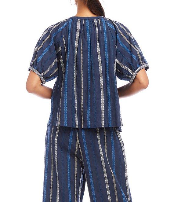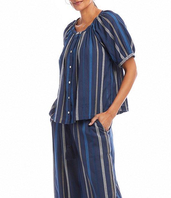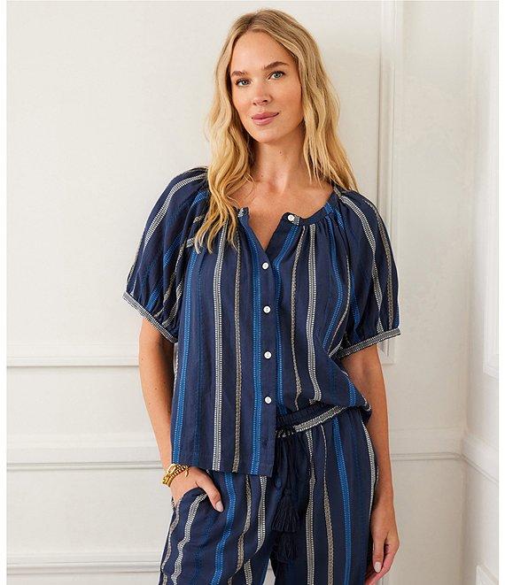 Karen Kane Embroidered Short Puff Sleeve Button Front Coordinating Top