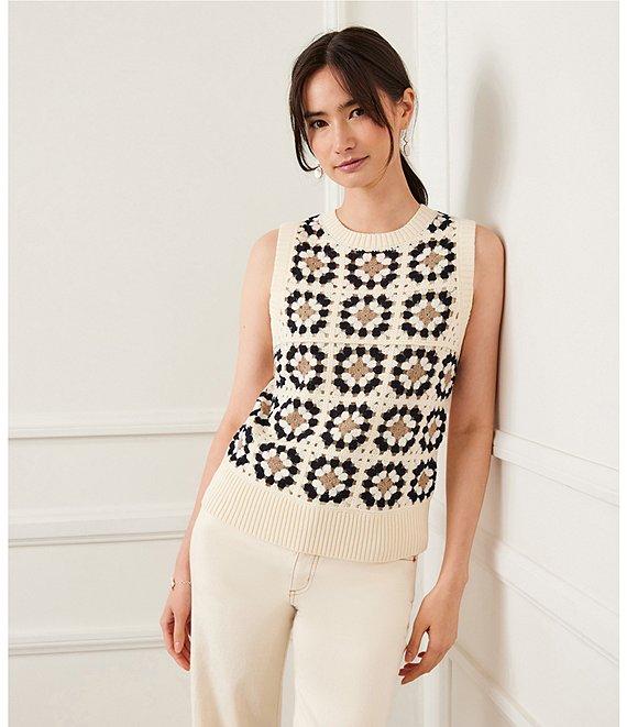 Karen Kane Patchwork Crochet Crew Neck Tank